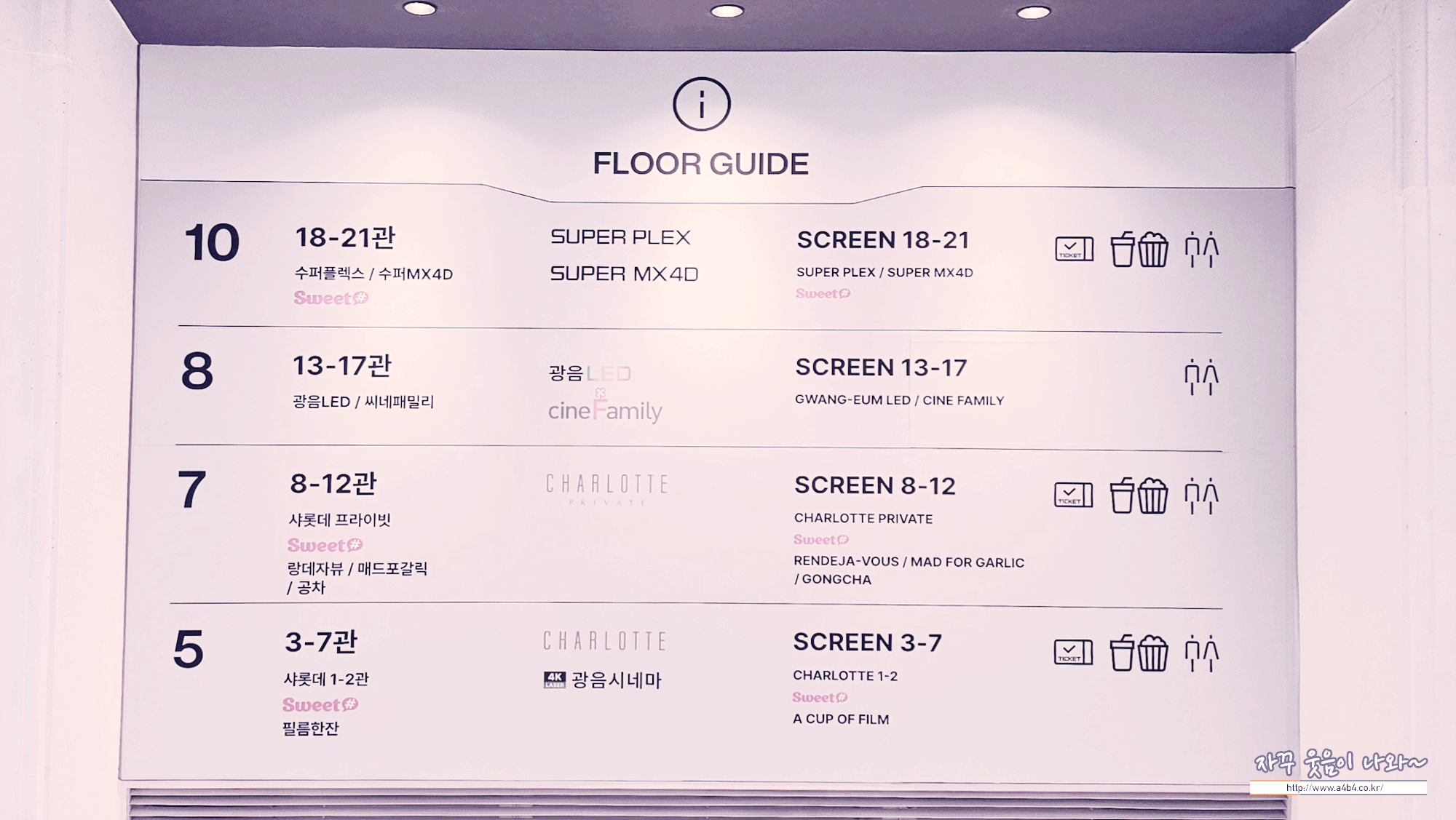 롯데시네마 월드타워점 층별 상영관은 아래와 같습니다.