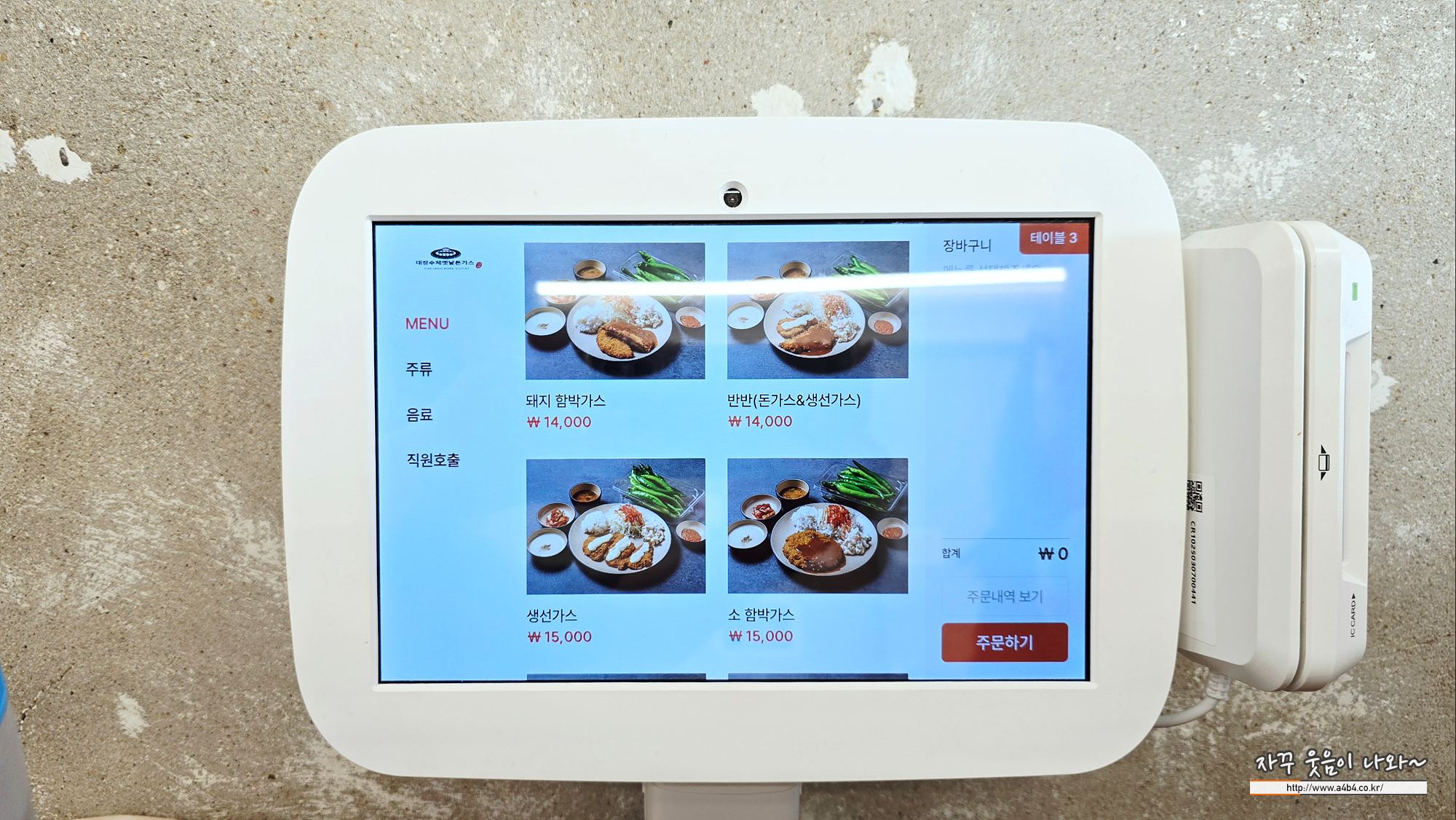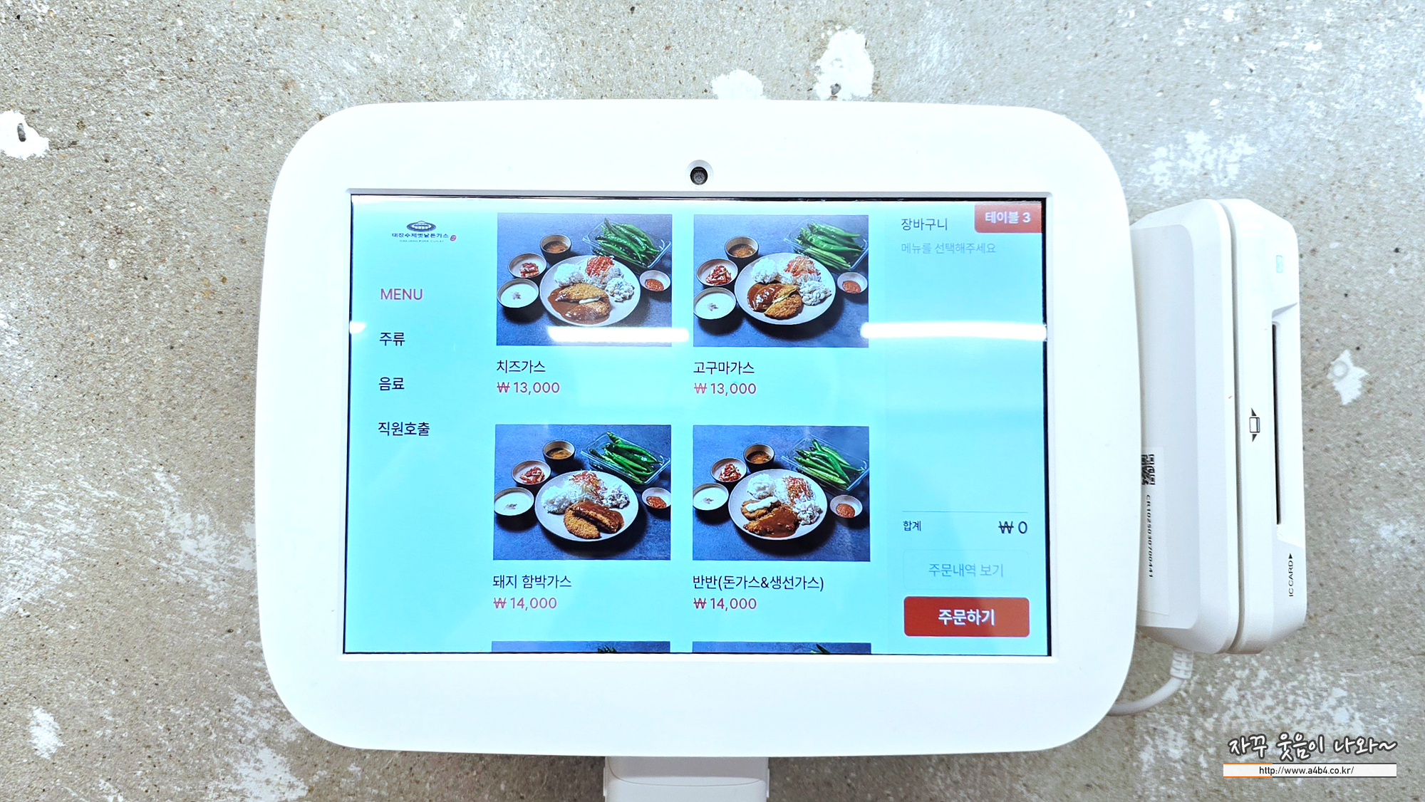 뱅뱅사거리 돈까스 맛집으로 메뉴는 돈가스 치킨가스 치즈가스함박가스 생선가스 등으로 구성되어 있습니다. 테이블 비치된 태블릿 통해 주문 및 결제하시면 됩니다. 가격은 13,000원 부터 ~