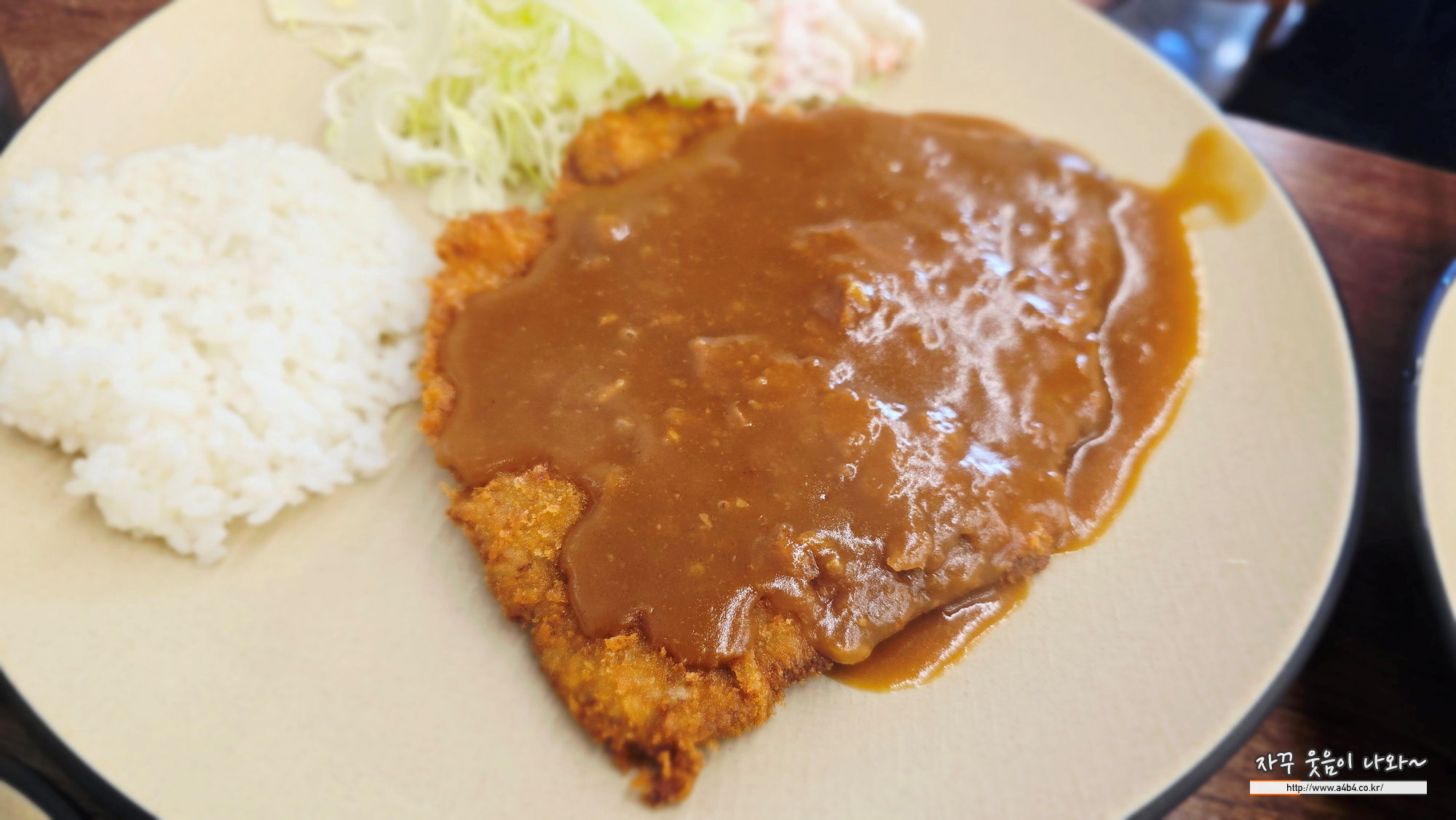 얇고 큼직한 돈까스에 달달한 소스가 얹어 있고요. 식감 좋습니다.