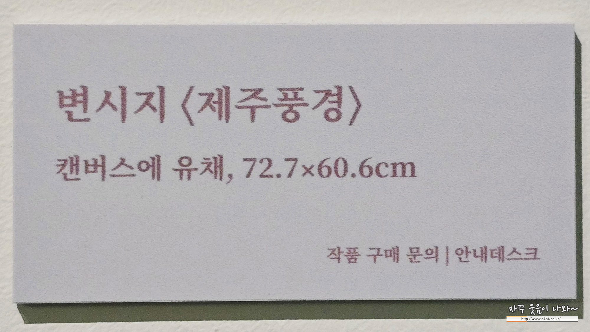 제주의 거친 풍경을 서양화 작업이지만 마치 동양화를 보는 것 같은 느낌이 너무나도 좋았던... 단 석 점의 작품만 만나볼 수 있어 아쉬움이 큰 작가
