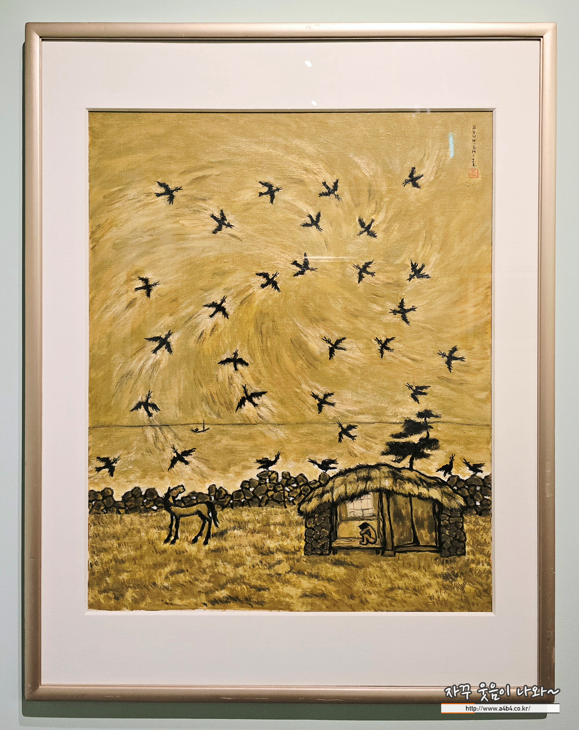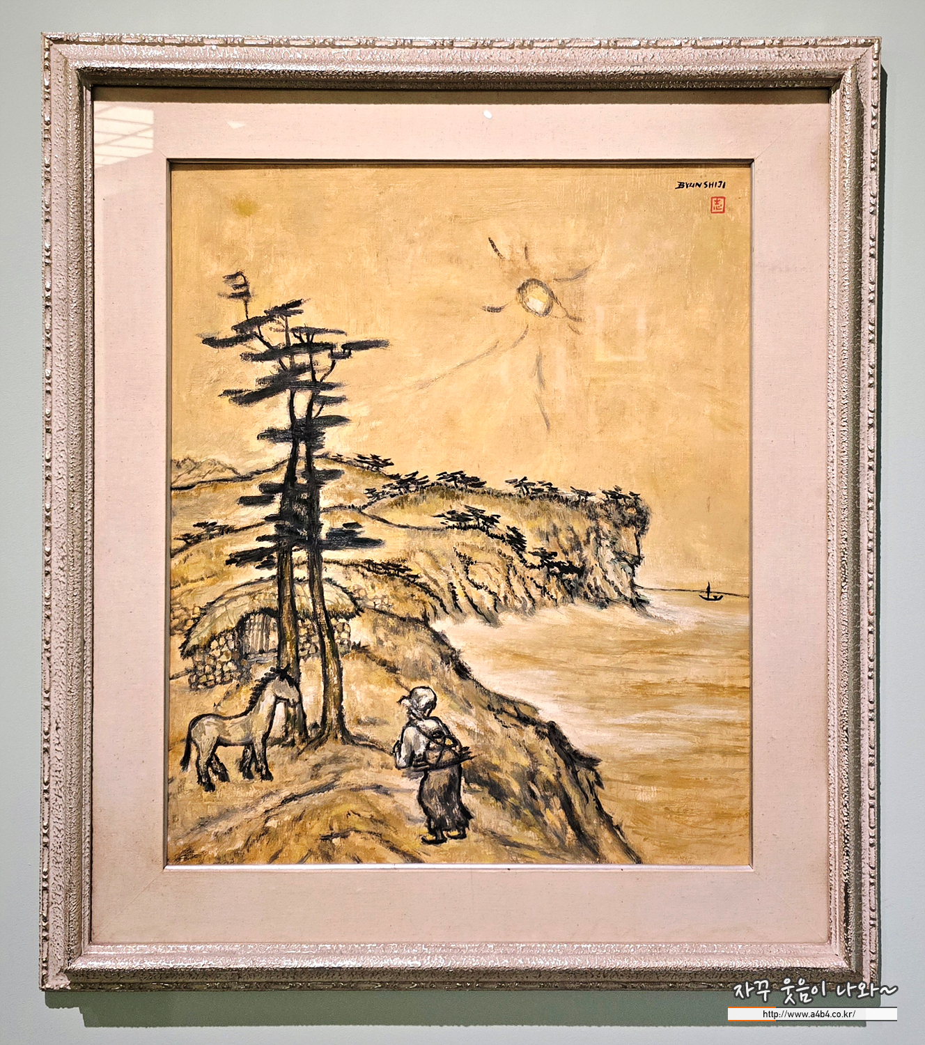 변시지 작가의 작품속 화면은 온통 누런 황토색으로 덮여 있습니다. 이는 제주의 흙, 햇빛, 그리고 한국인의 정서를 상징하는 색으로, 작가는 이를 통해 '제주적 정신'을 표현했습니다.