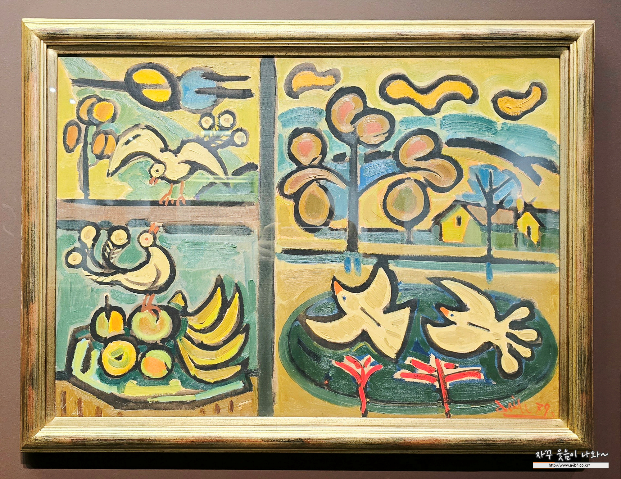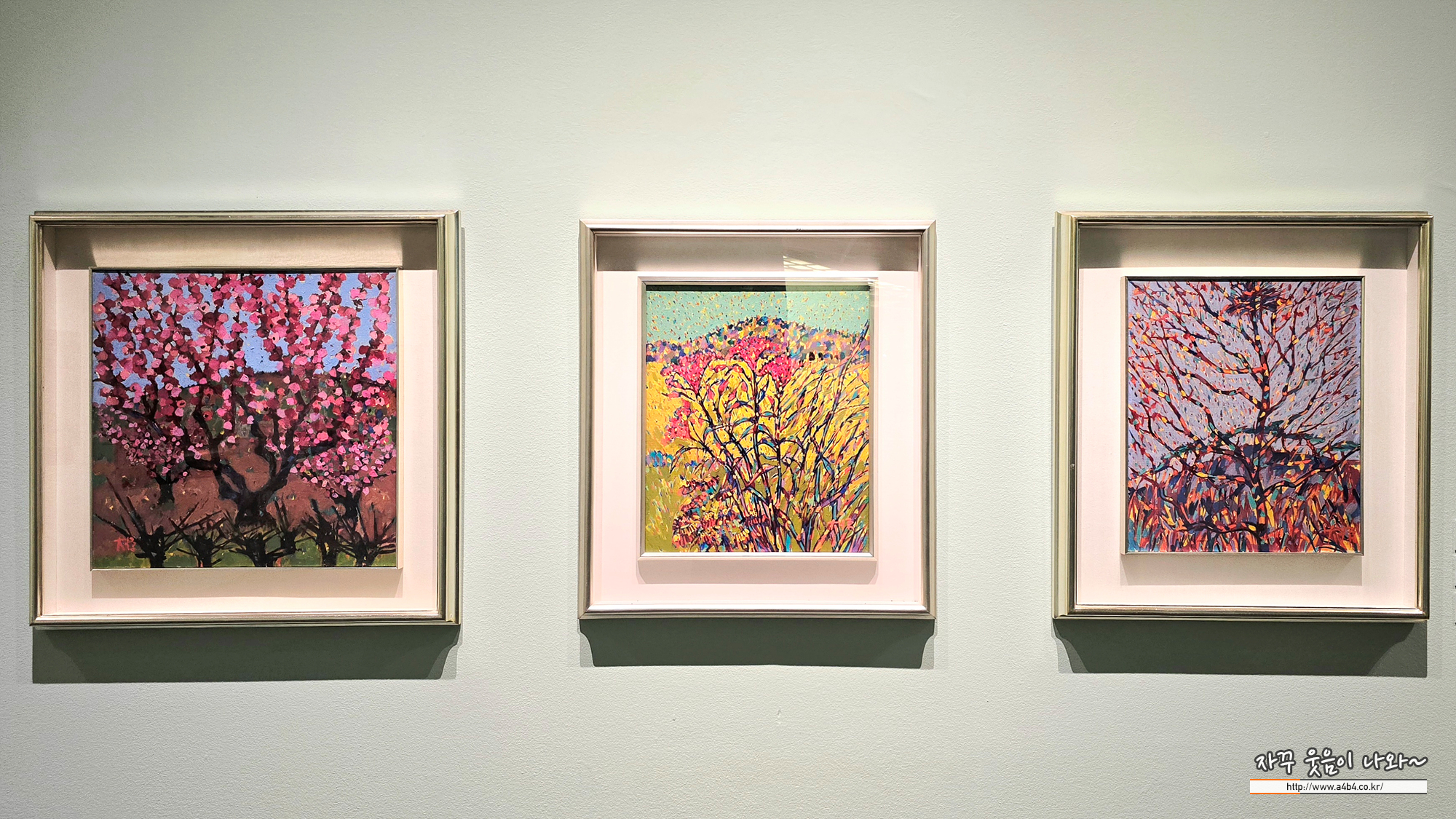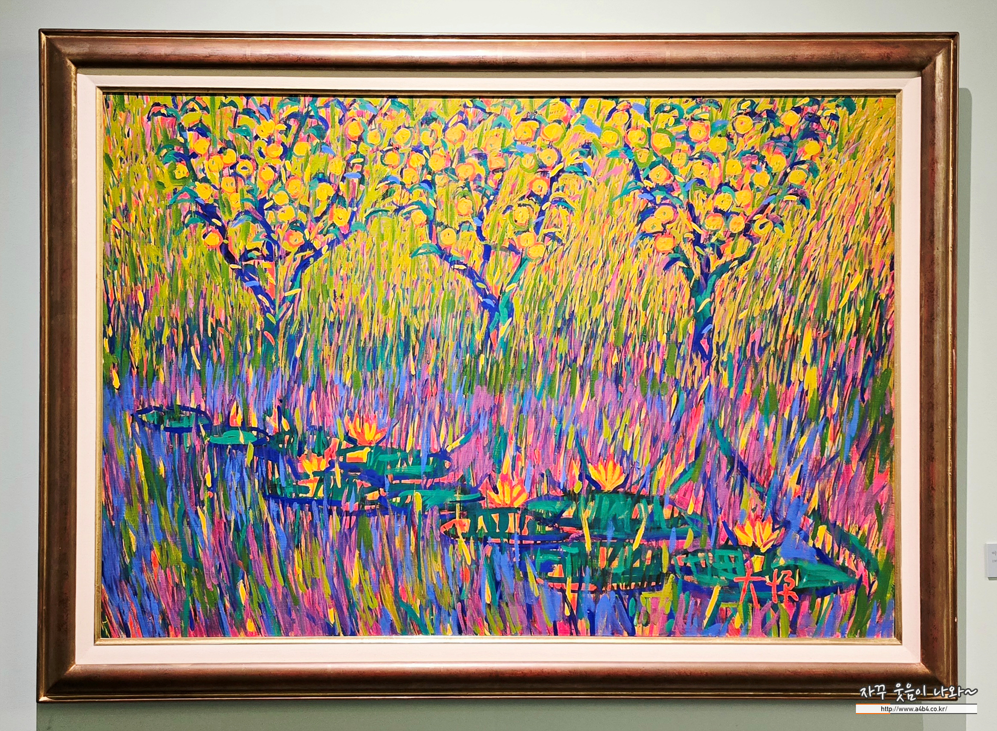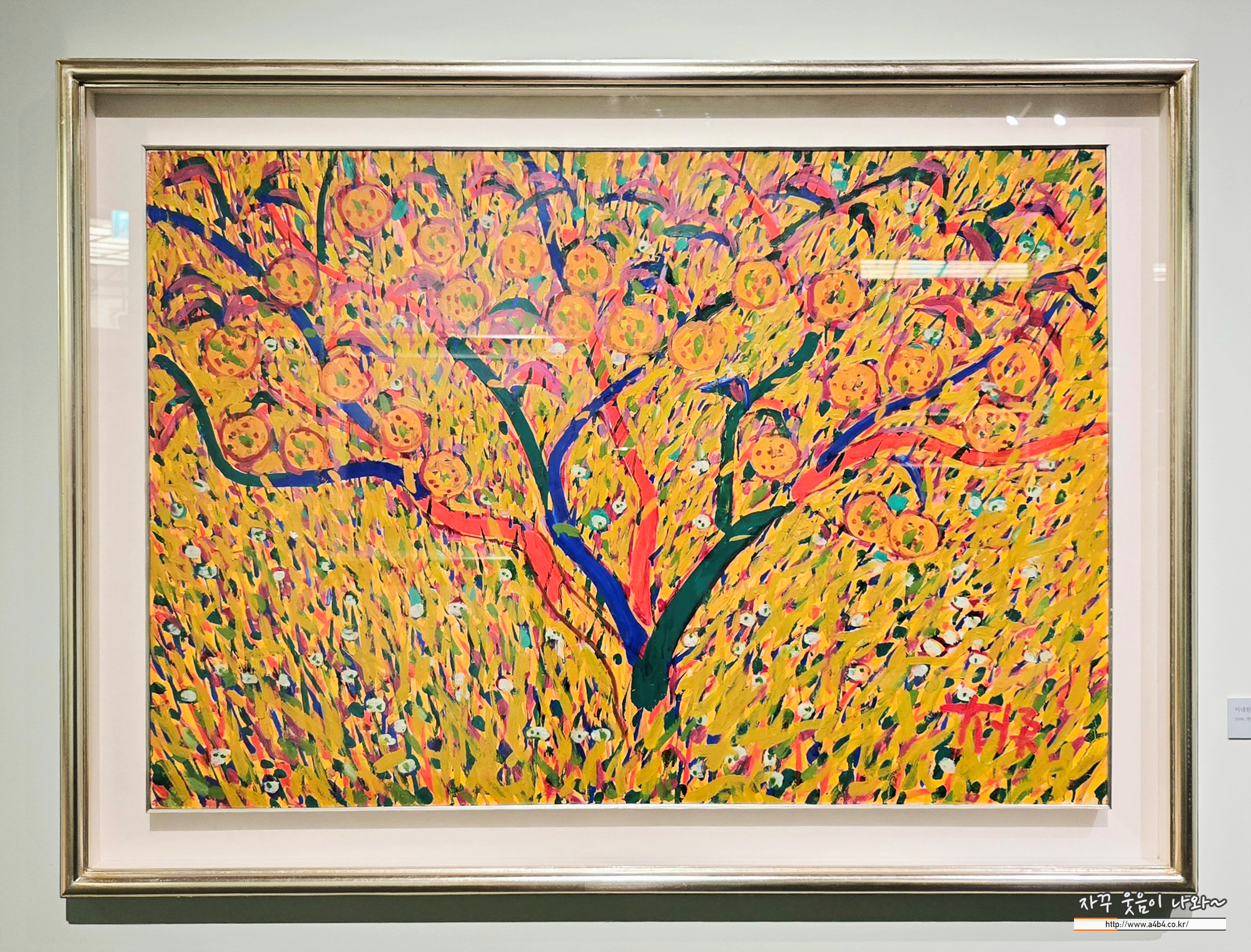 이대원 화백은 산과 들, 나무, 연못, 돌담, 과수원 등 자연 풍경을 짧고 반복적인 붓질과 선명한 색채로 그려 생동감 넘치는 화면을 만들었는데요. 자연의 형상을 단순 재현하는 데 그치지 않고 그 안의 생명력과 에너지를 회화적으로 응축해 독자적인 조형 세계를 완성했습니다. 색채와 붓질, 리듬이 어우러진 화면은 관람객으로 하여금 자연의 에너지와 삶의 기쁨을 감각적으로 경험하게 합니다. 2005년 타계할 때까지 창작을 이어간 그는 이중섭, 박수근, 장욱진과 함께 한국 구상미술을 대표하는 작가로 자리매김했습니다.