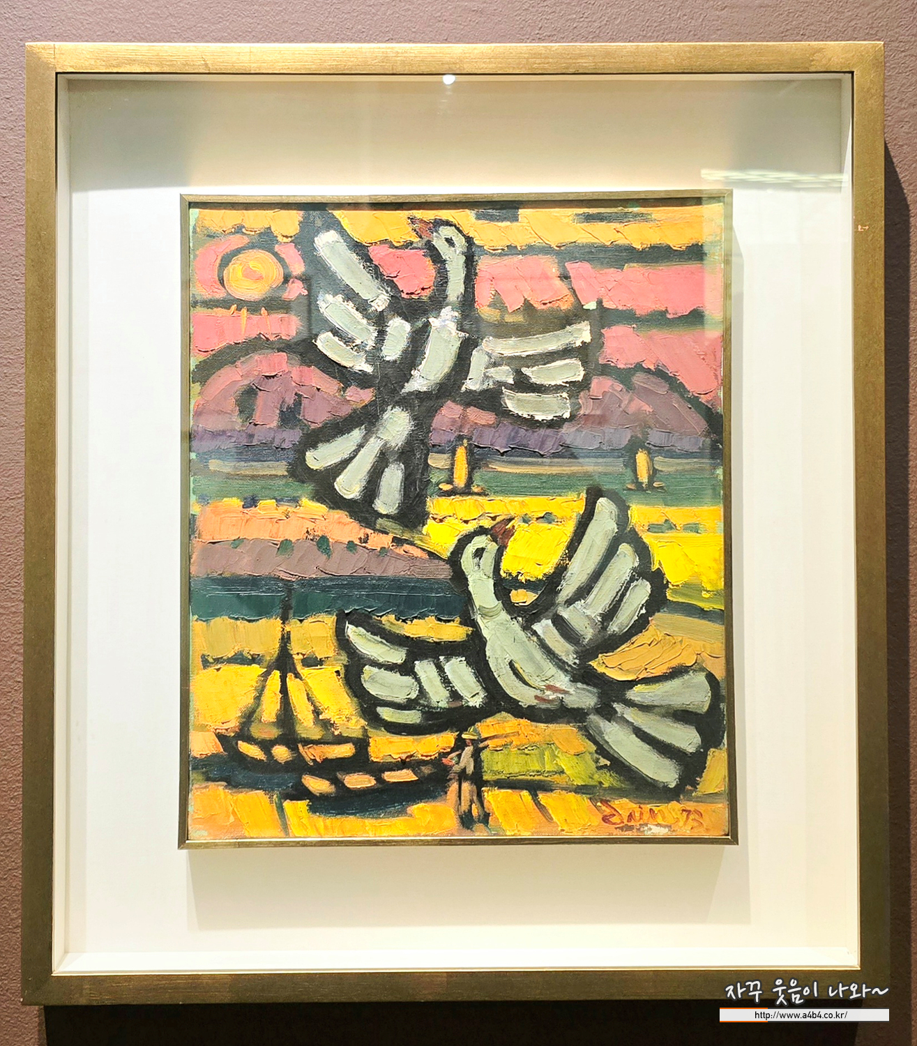 ‘석양의 화가’로 불리는 그의 회화는 강렬한 색감, 굵은 윤곽선, 절제된 화면 구성으로 특징지어지는데요. 특히 1970년대 전후 노랑과 주홍색의 석양빛과 안정된 수평 구도는 작품 전반을 관통하는 조형적 양식으로 자리 잡았습니다.