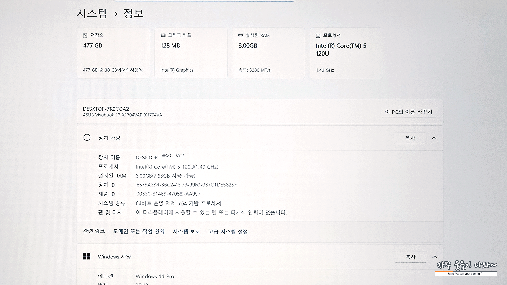 오늘은 윈도우 설치 중심으로 리뷰하고요. 아수스 비보북 17인치 하드웨어 사양은 아래 후기 참고하세요.