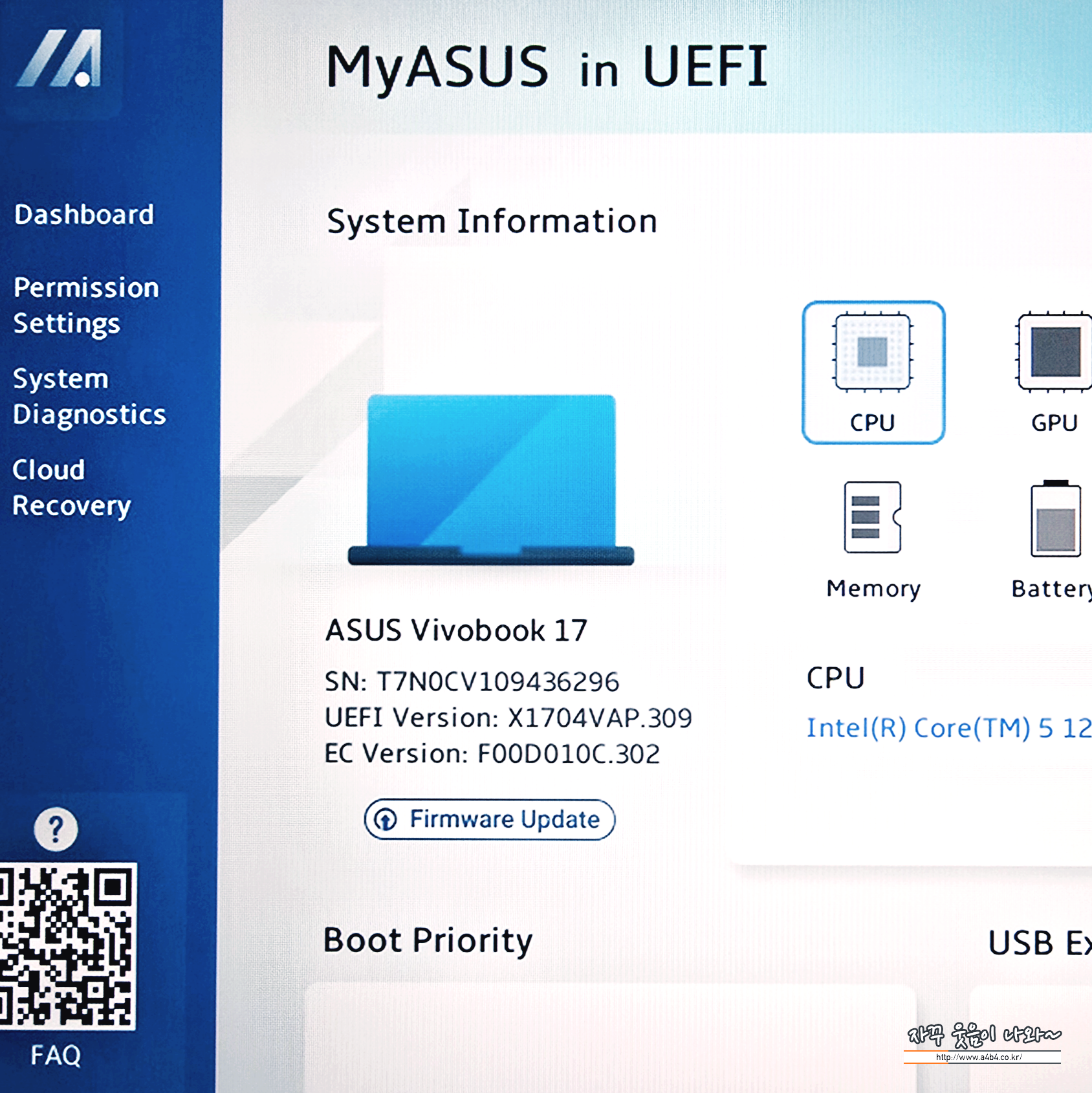제가 구입한 에이수스 비보북에는 이미 My ASUS가 설치되어 있는데요. 먼저 펌웨어 업데이트가 필요합니다.