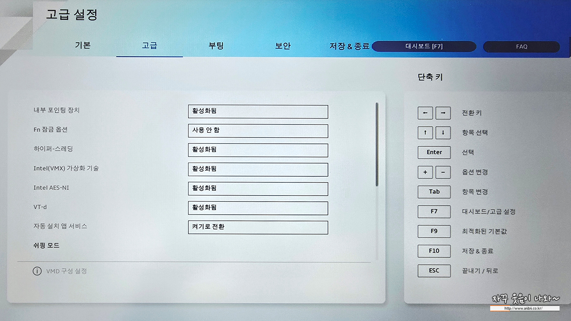 | VMD 설정 비활성화