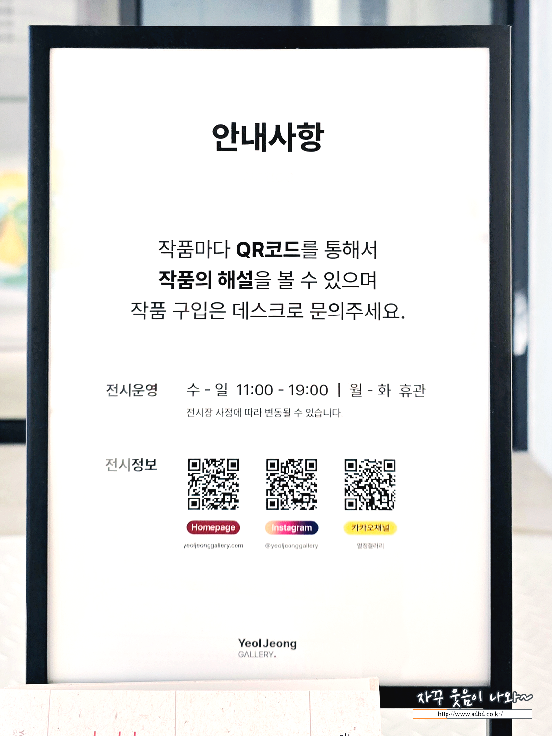 전시장소 : 열정갤러리 / 무료 전시회
