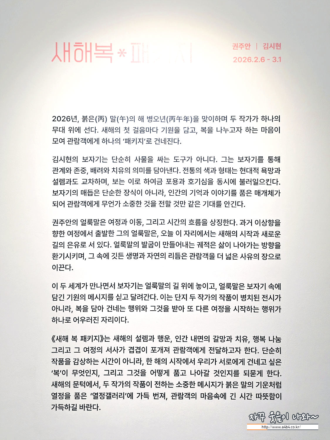 전시기간 : 2026. 02. 06 - 03. 01 (월 화 휴관)