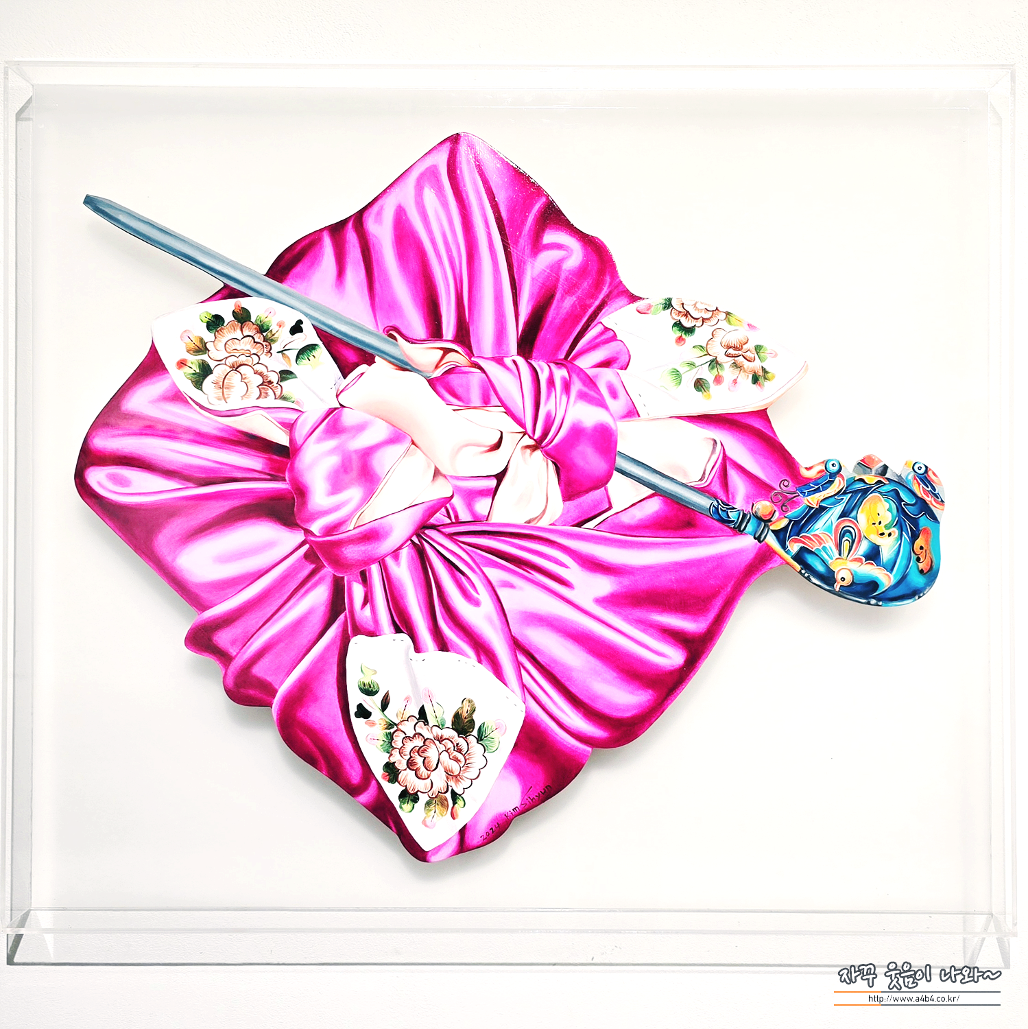 ‘보자기 작가’로 불리는 한국 중견 작가로, 인천대 서양화과와 홍익대 대학원을 졸업한 뒤 2004년부터 40여 회의 개인전을 열었으며, 세종대와 백석예대에서 강의도 했습니다. 그의 작업은 화려한 보자기 문양 속에 민화 요소, 한글, 금동 미륵보살상, 코카콜라 같은 글로벌 상징을 극사실주의 기법으로 병치해 전통과 현대 소비문화를 재해석하는 것이 특징입니다. 최근 2026년 2월 현대백화점 판교점 갤러리아이엠에서 열린 'Wrapped Wishes' 초대전 등으로 활발히 활동 중이며, 서울시립미술관 등에 작품이 소장되어 있고 미술 교과서에도 실린 대중적 인지도가 높은 작가입니다.