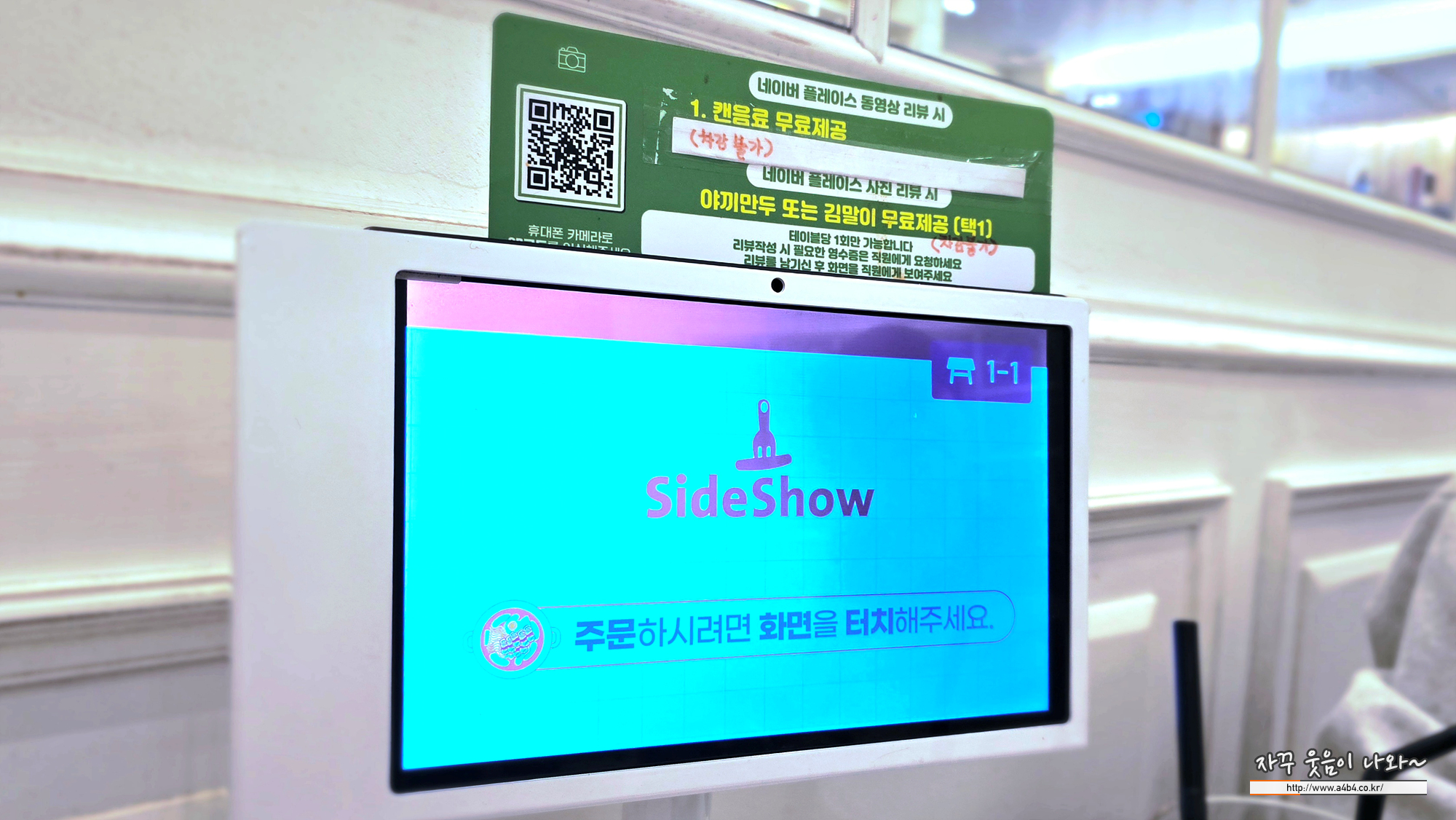결제는 식사 후 입구에서 결제하시면 됩니다. 사이드쇼 용산아이파크몰점 주차할인은 결제시 차량번호 말씀하시면 2시간 무료주차 가능합니다. (다른 서비스 합산 최대 5시간 무료주차 가능합니다.)