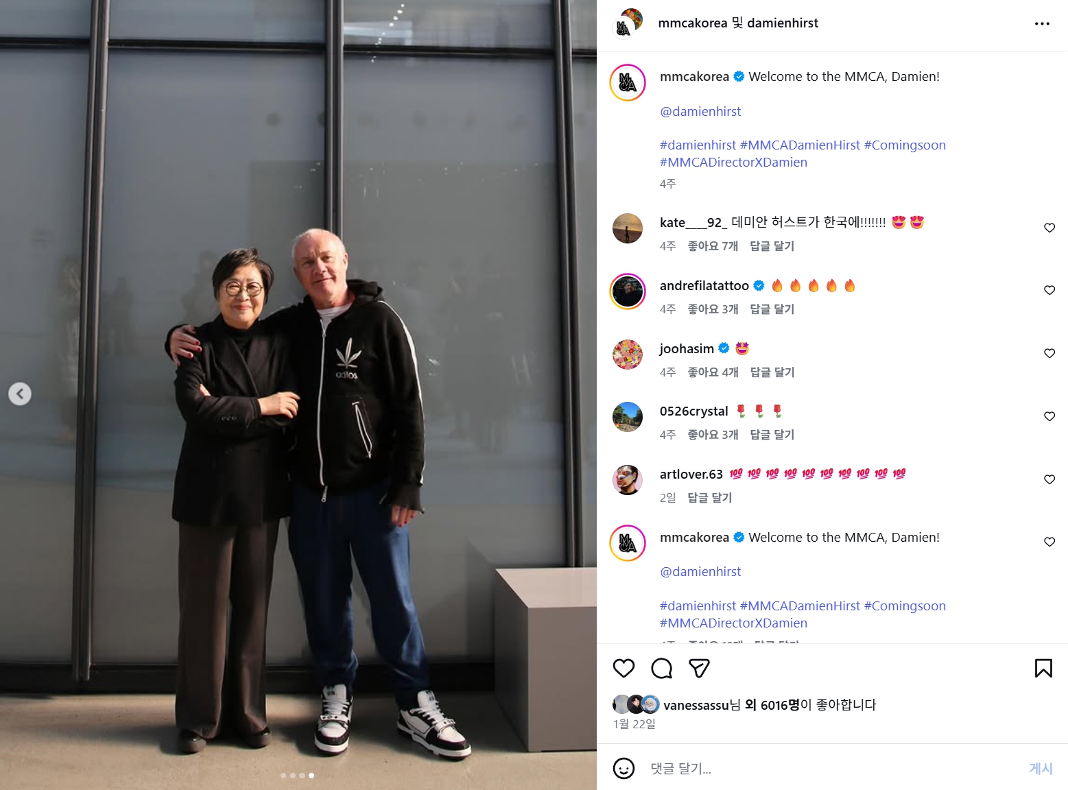 이미 지난달 1월에 데이미언 허스트는 국립현대미술관을 다녀 갔습니다. 데이미언 허스트 인스타그램에 석 장의 사진과 전시 오픈 안내 소식이 등록되어 있네요.