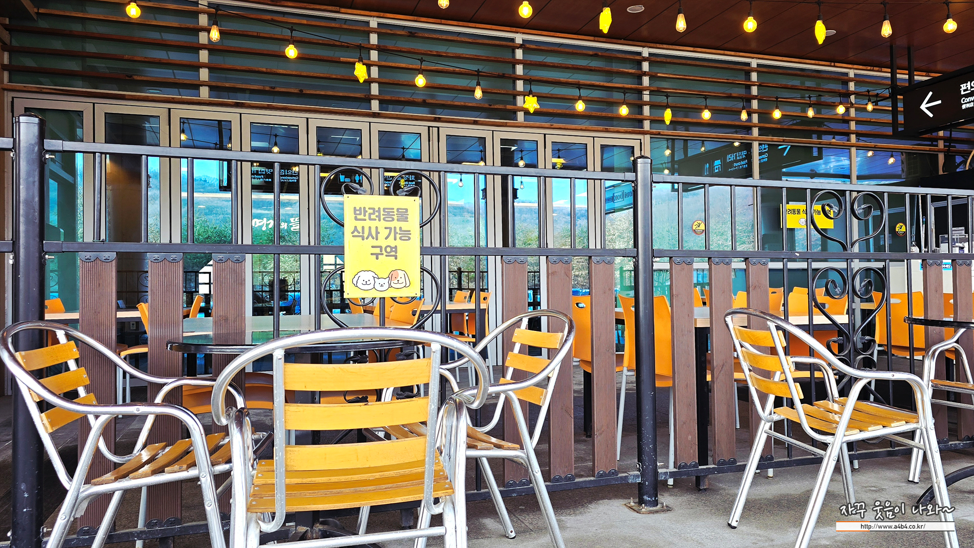 양양방향 경기도 광주휴게소 왼쪽 끝 야외에는 강아지와 함께 식사 가능한 구역이 마련되어 있습니다.