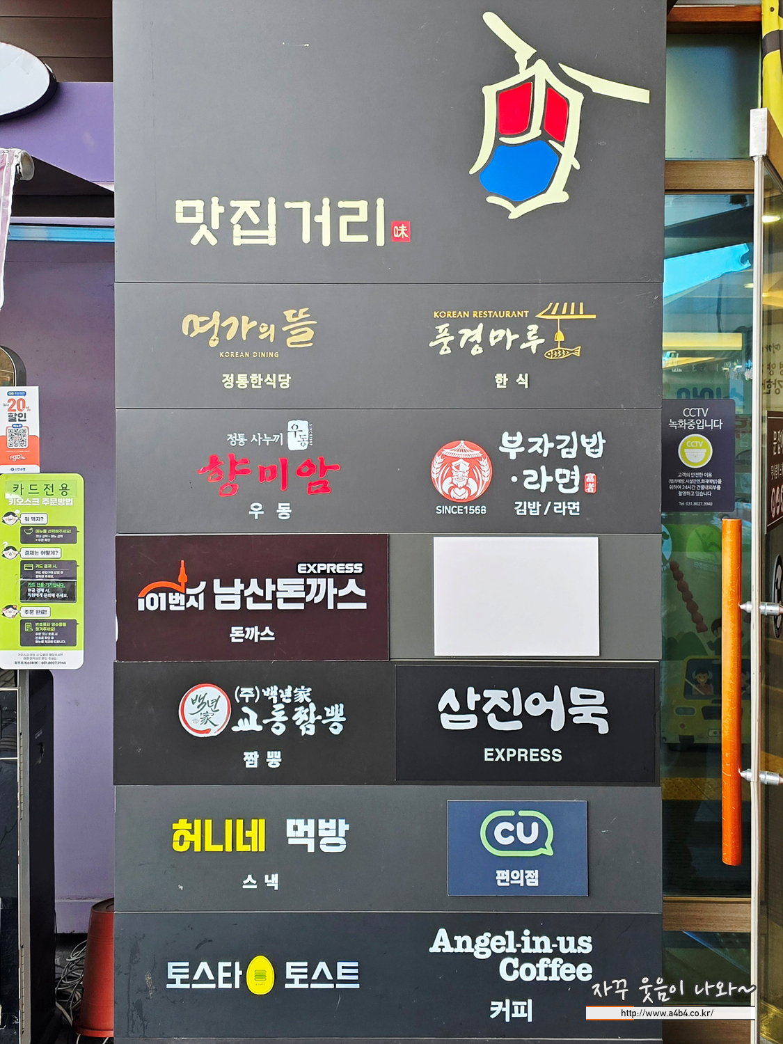 한식 명가의 뜰, 풍경마루, 우동 향미앙, 김밥과 라면, 남산돈까스 짭, 교동짬뽕 등 맛집