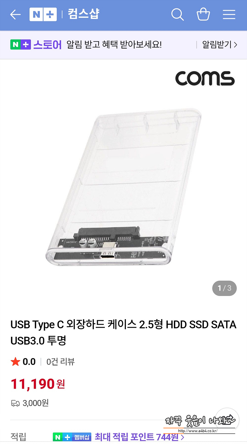 사실 이전에 다른 브랜드 외장하드케이스를 5천원 가격에 구입했는데요. 케이블 타입이 USB-B타입을 지원하는 제품이었습니다. 사용이나 호환에 큰 문제는 없지만 요즘은 B Type를 지원하는 제품이 거의 없어서 케이블을 또 하나 가지고 다녀야 하는 불편이 생깁니다. 그래서 반품하고 다시 C타입 제품으로 구입 했습니다.