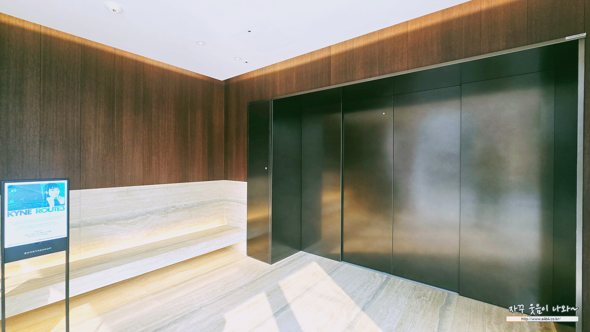 갤러리 외관이 미니멀하게 디자인되어 있고, 처음 오시는 분들은 그냥 지나갈 수 있는데요. 잘 보고 오세요. 사진이 대형 엘리베이터를 타고 내려가는 다소 독특한 경험을 하실 수 있습니다.
