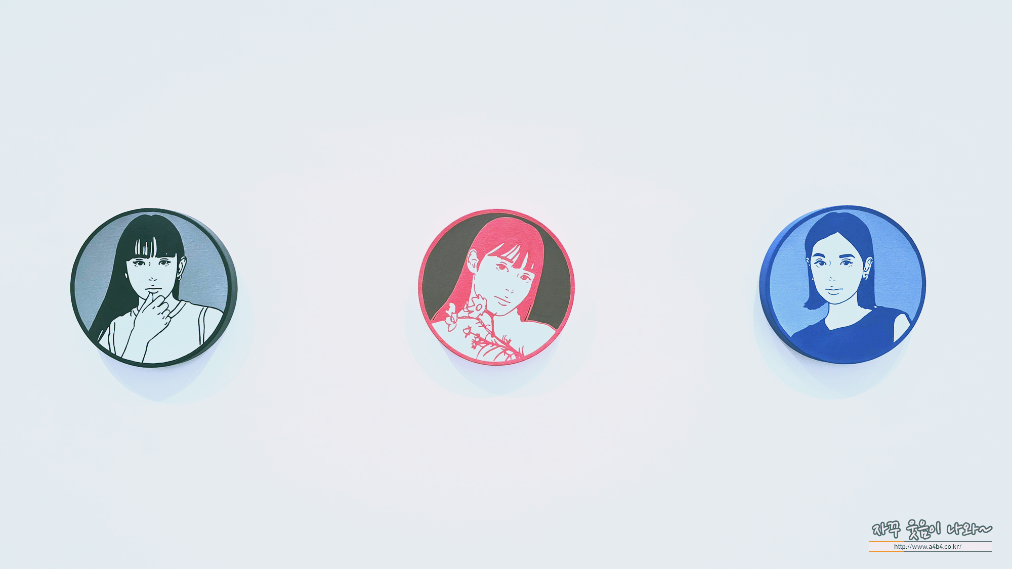 KYNE ROUTE3 전시회 마지막 공간은 둥근 인물작품으로 마감됩니다. 앞 전시에서 등장한 인물들의 증명사진이라고 할까요?
