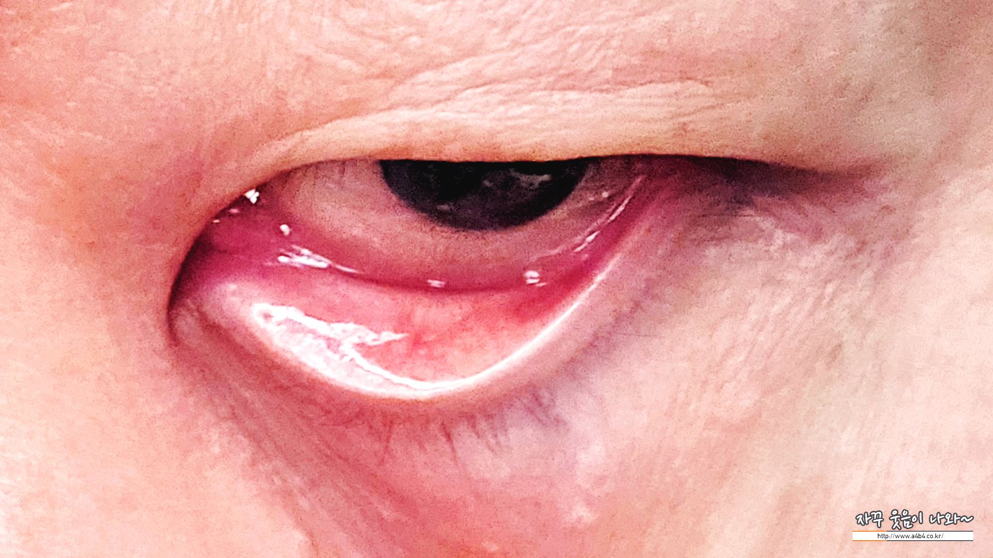 먼저 여러가지 눈 검사 받고, 촬영한 사진 보여주시는데, 눈꺼플 안쪽 마이봄샘에 염증이 심하게 생겼네요. 또한 이 마이봄샘이 막혔는데 쉽게 회복되지는 않는다고 하시네요.