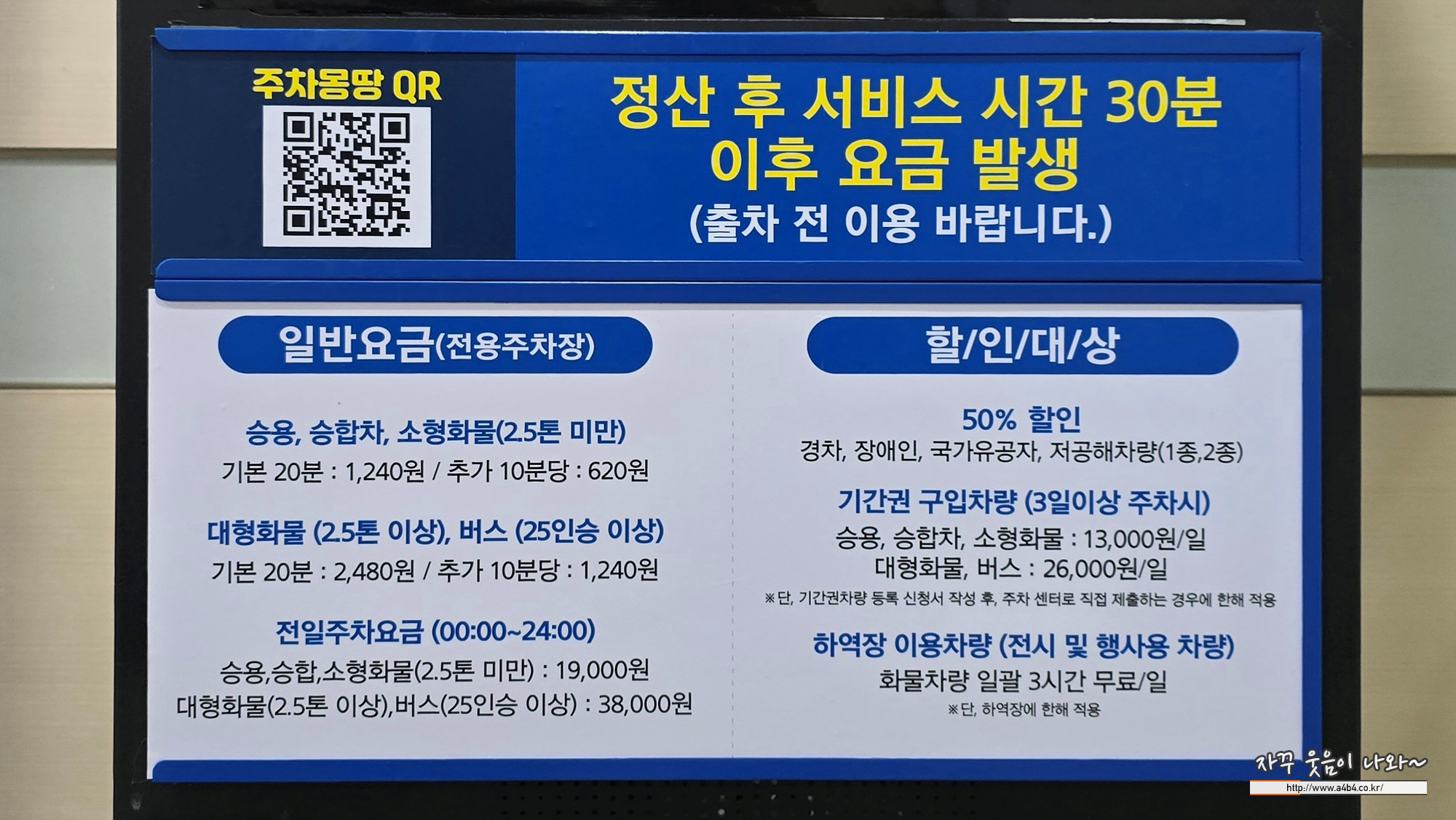 다만 프로션으로 주차요금 정산 후 한 시간이내 출차하면 추가요금 부과되지 않습니다.