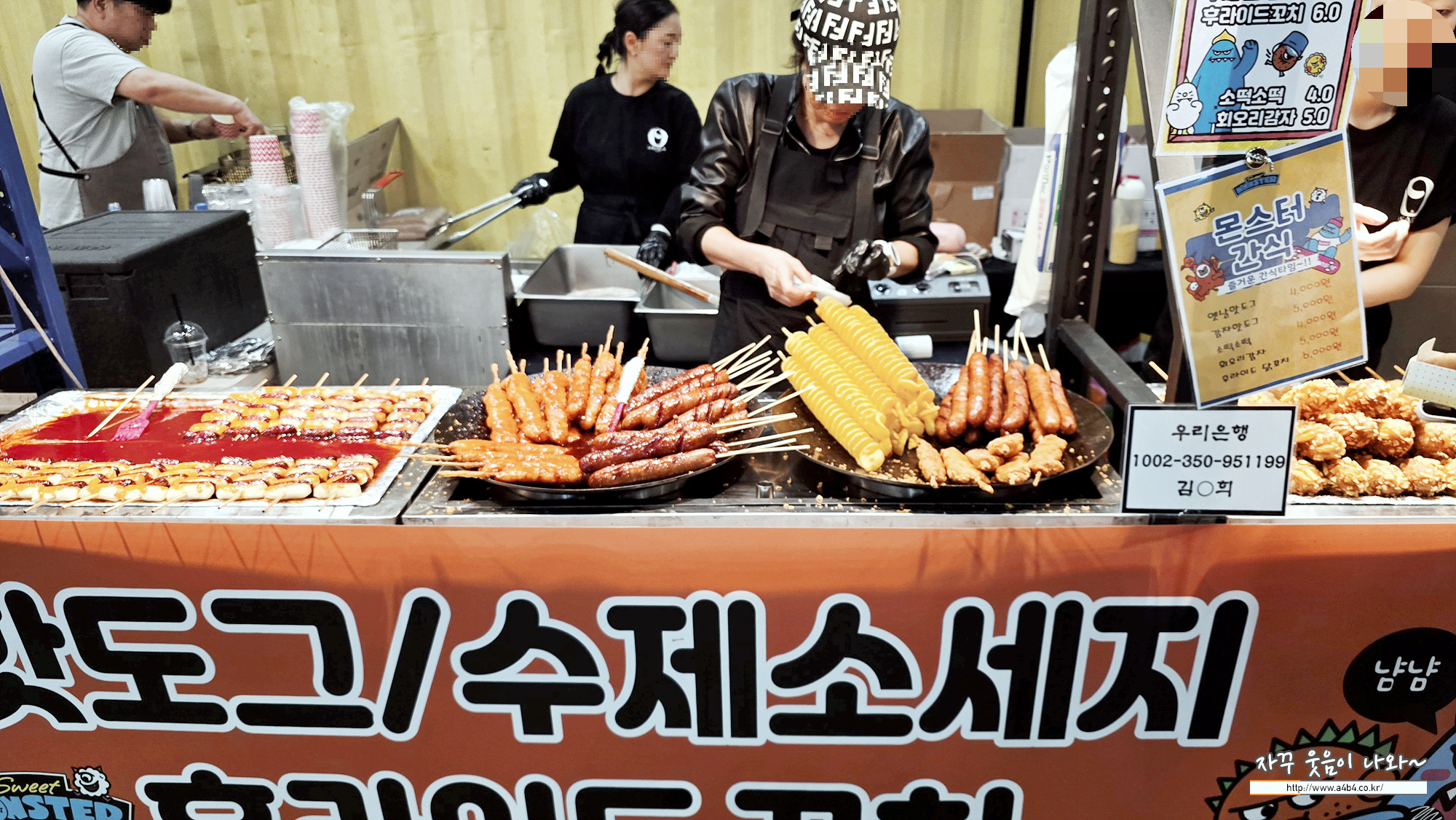킨텍스 펫쇼코리아 2026 행사장 중앙에는 푸드코트가 마련되어 있는데요. 이번에는 핫도그와 꼬치로 구성되어 있네요.