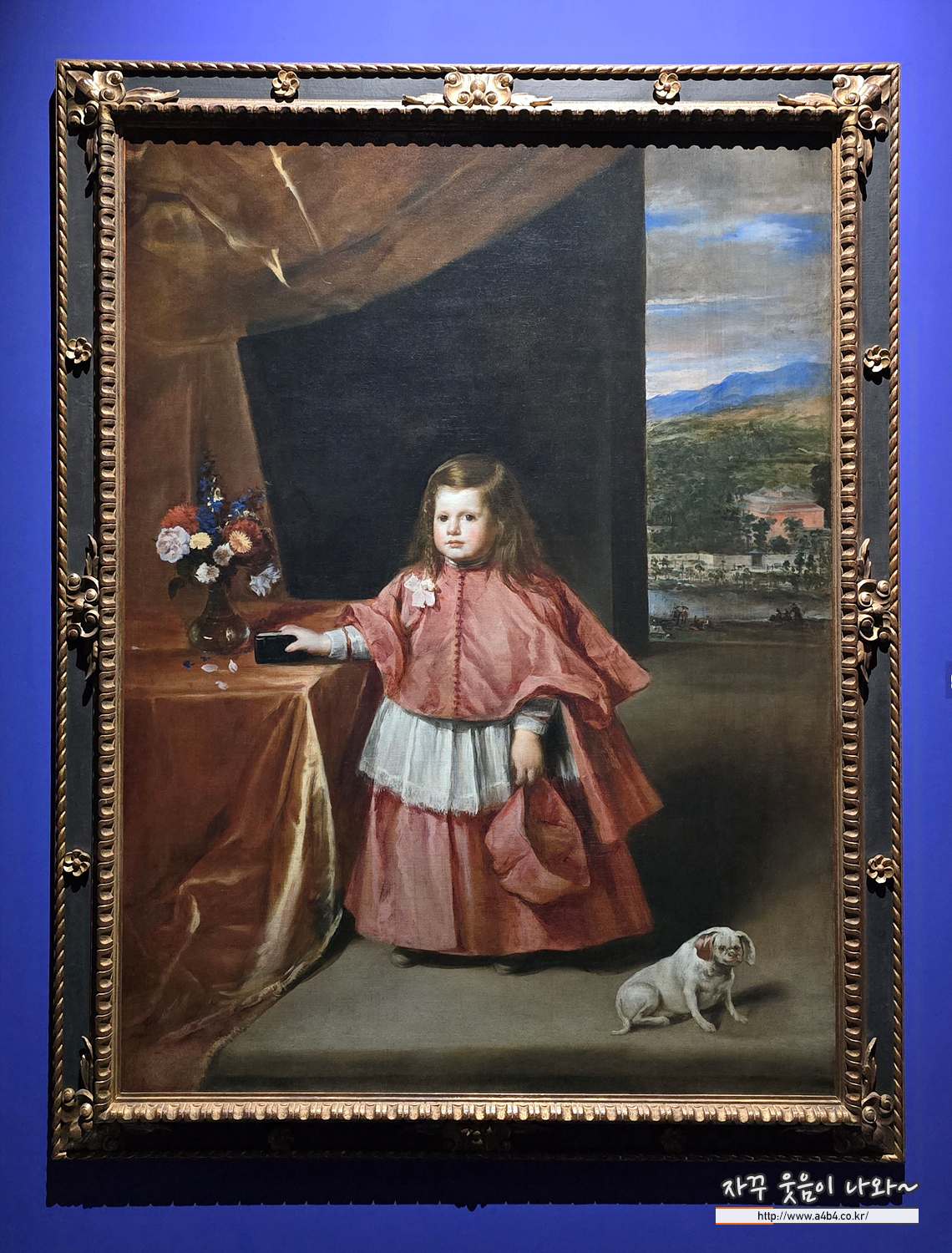 벨라스케스의 제자이자 사위인 후안 바우티스타 마르티네스 델 마소는 스페인 궁정 초상 전통을 계승한 화가입니다. 그는 스승의 형식을 단순히 모방하지 않고 인물, 공간, 정물의 관계를 면밀히 구성하여 자신만의 방식으로 재해석했습니다. 작품 〈성직자 복장을 한 아이〉는 이러한 마소의 특징을 잘 보여줍니다. 붉은 성직복의 색채와 주름은 공간에 통일감을 부여하며, 테이블 위 정물들은 인물의 위치를 견고하게 고정합니다. 또한 화면 속 흰 개는 궁정 초상의 전통을 유지하면서 전체적인 분위기를 조화롭게 완화합니다.