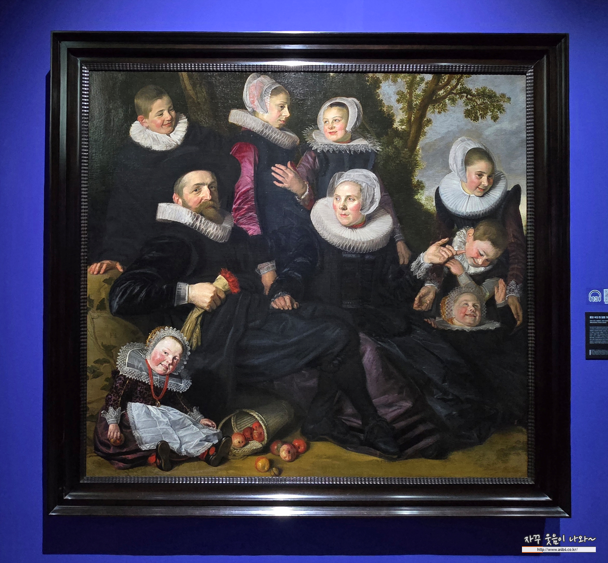 그의 구성력이 집약된 풍경 속의 판 캄펜 가족 초상은 부유한 상인 가족의 모습을 담고 있습니다. 부모를 중심으로 자녀들을 조화롭게 배치해 가족의 긴밀한 유대와 사회적 위상을 동시에 보여줍니다. 이 대작은 이후 여러 조각으로 나뉘는 수난을 겪었으나, 할스 특유의 세련된 인물 묘사는 여전합니다. 특히 나중에 추가된 막내 아이의 존재는 작품의 독특한 제작 이력을 보여주는 흥미로운 요소입니다.