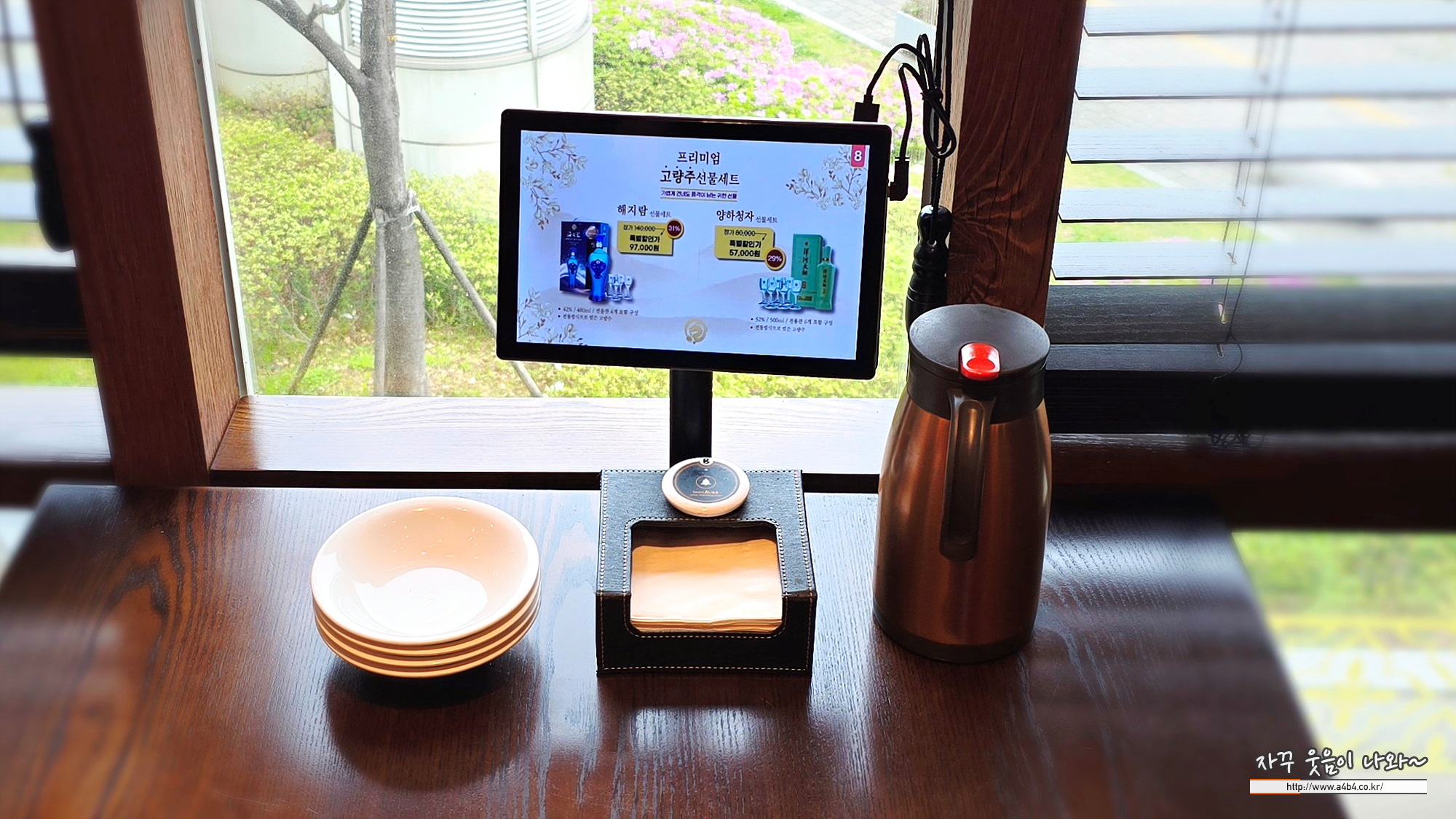 아래 각각의 테이블에 비치된 태블릿 통해 주문 가능합니다.
