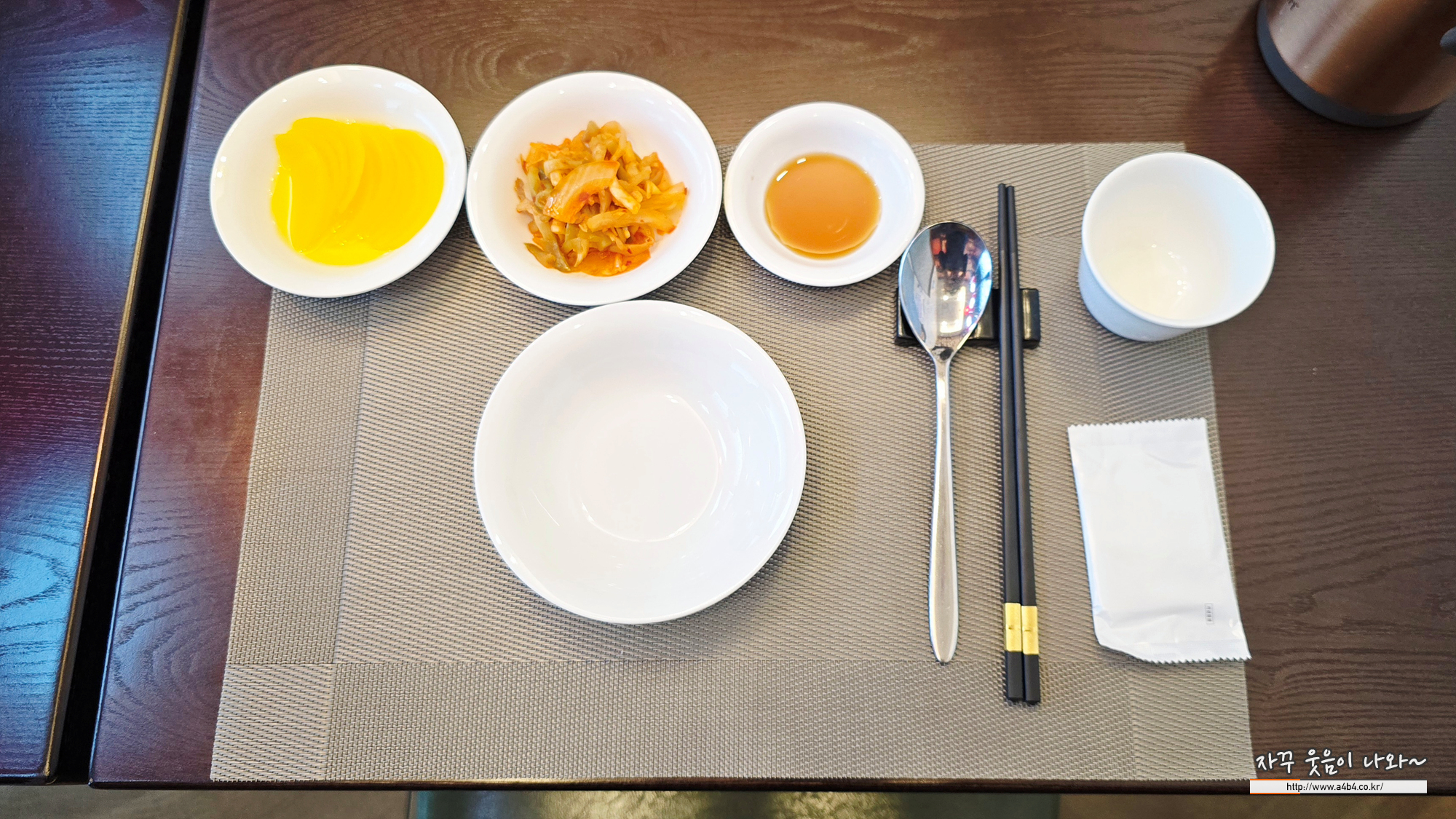 테이블에 단무지와 짜사이 등 개인별로 각각 세팅되어 있는 것 좋네요.