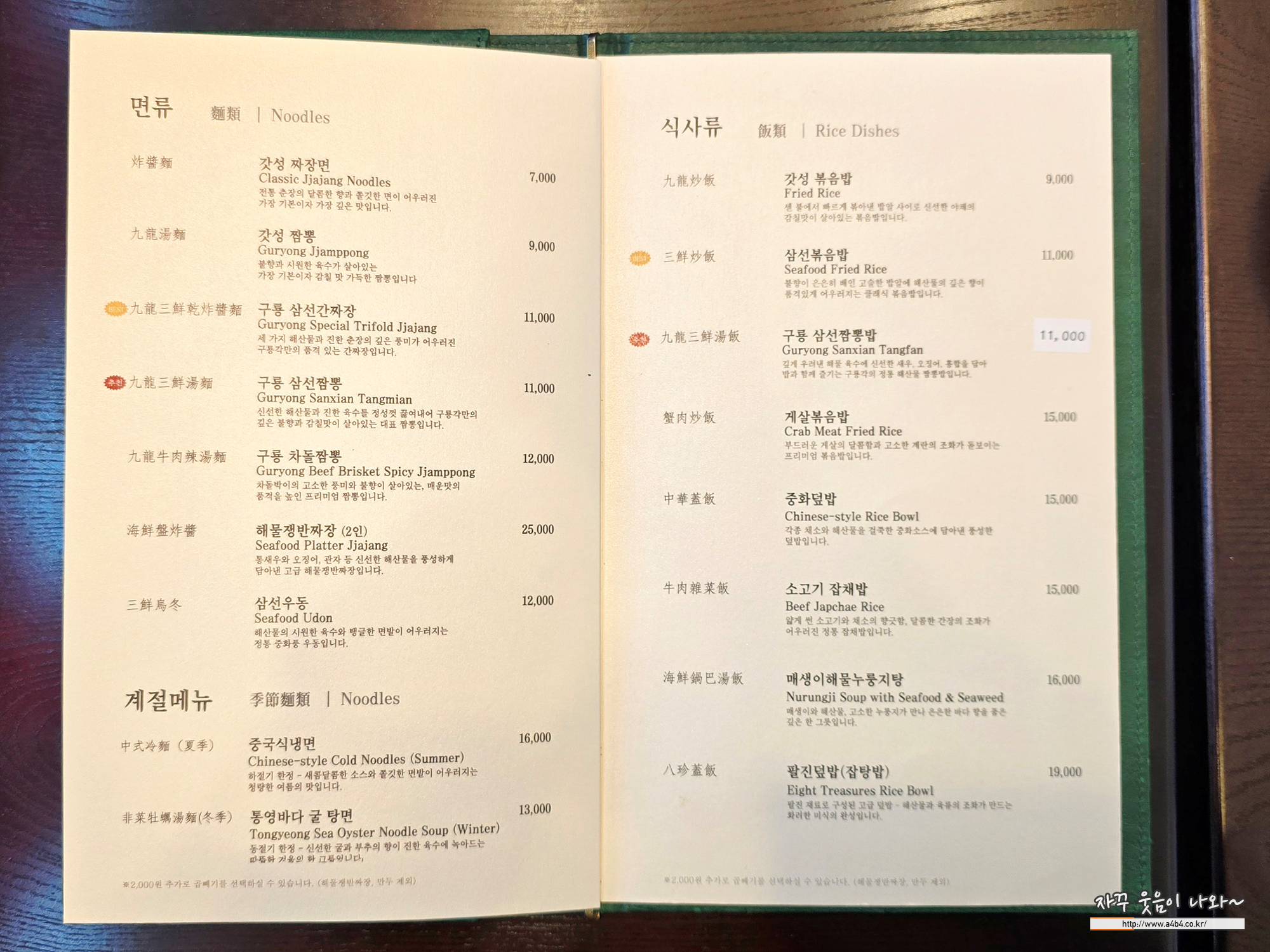 놀란 부분은 짜장면과 짬뽕 가격이 7천원과 9천원 입니다. 가격 저렴하다는...