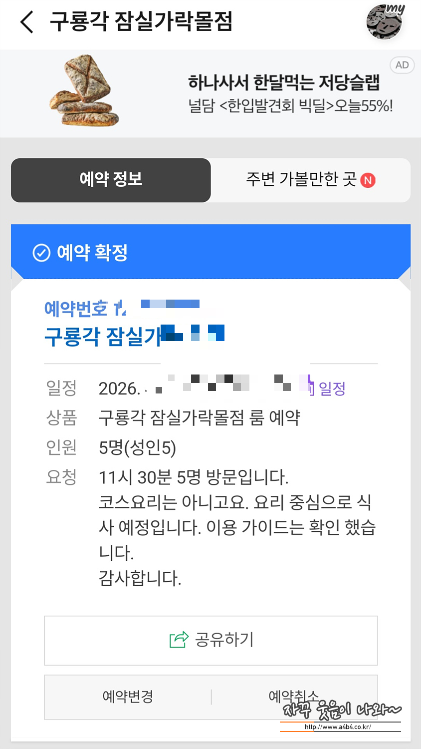 저희는 네이버 예약 통해 구룡각 잠실 룸 예약하고 5명 방문 했습니다.