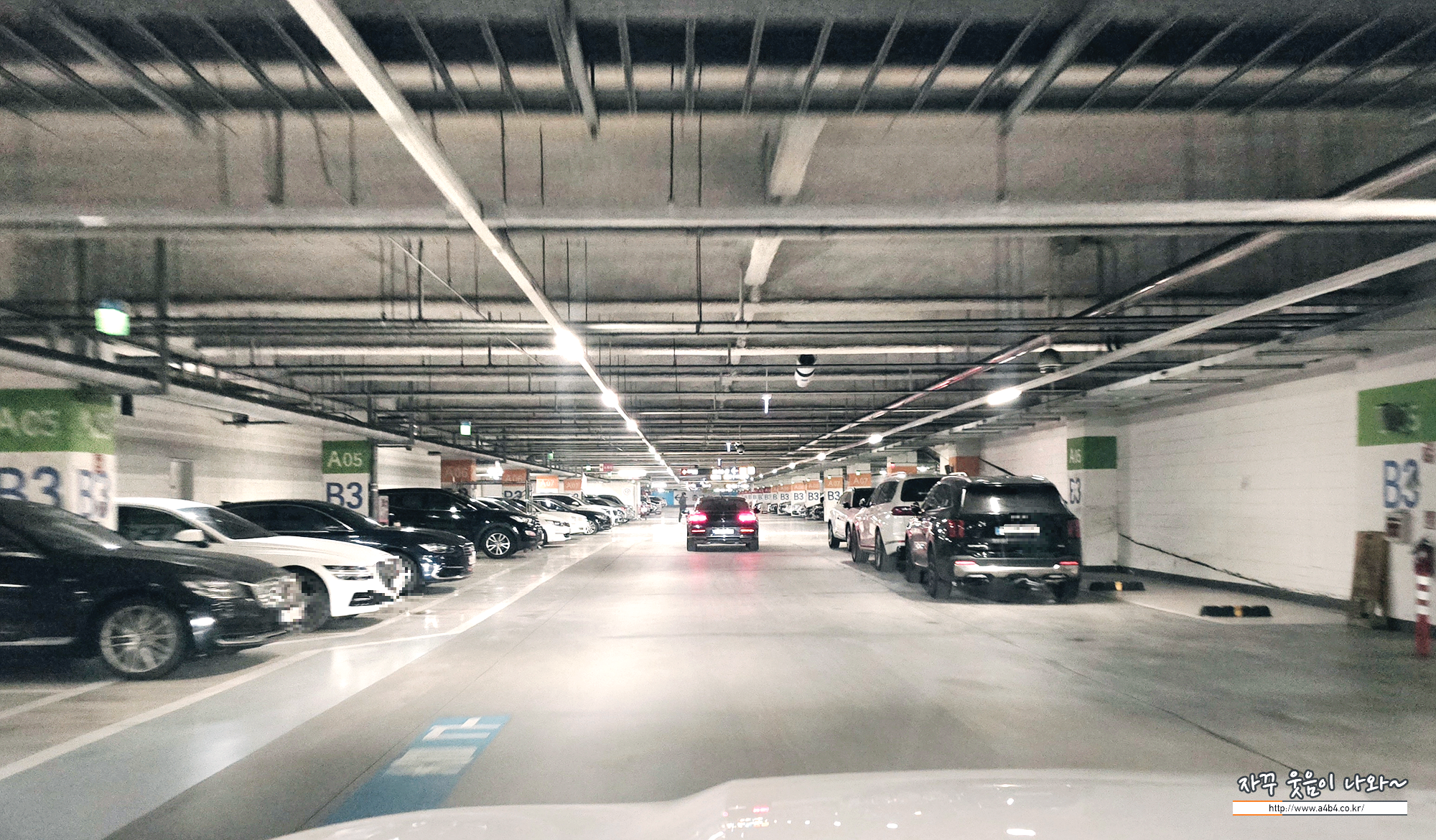 지하 진입하면 바로 지하 3층 주차장으로 내려오게 되고요. 가락몰 전체공간 연결되어 있습니다. 주차장 도로폭 여유있고 비교적 깨끗하게 관리되고 있는데요.