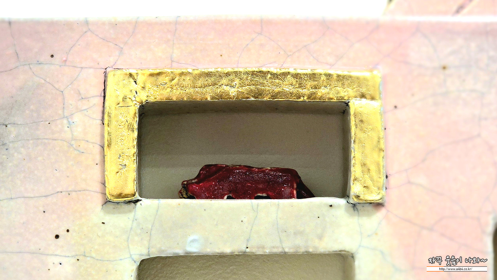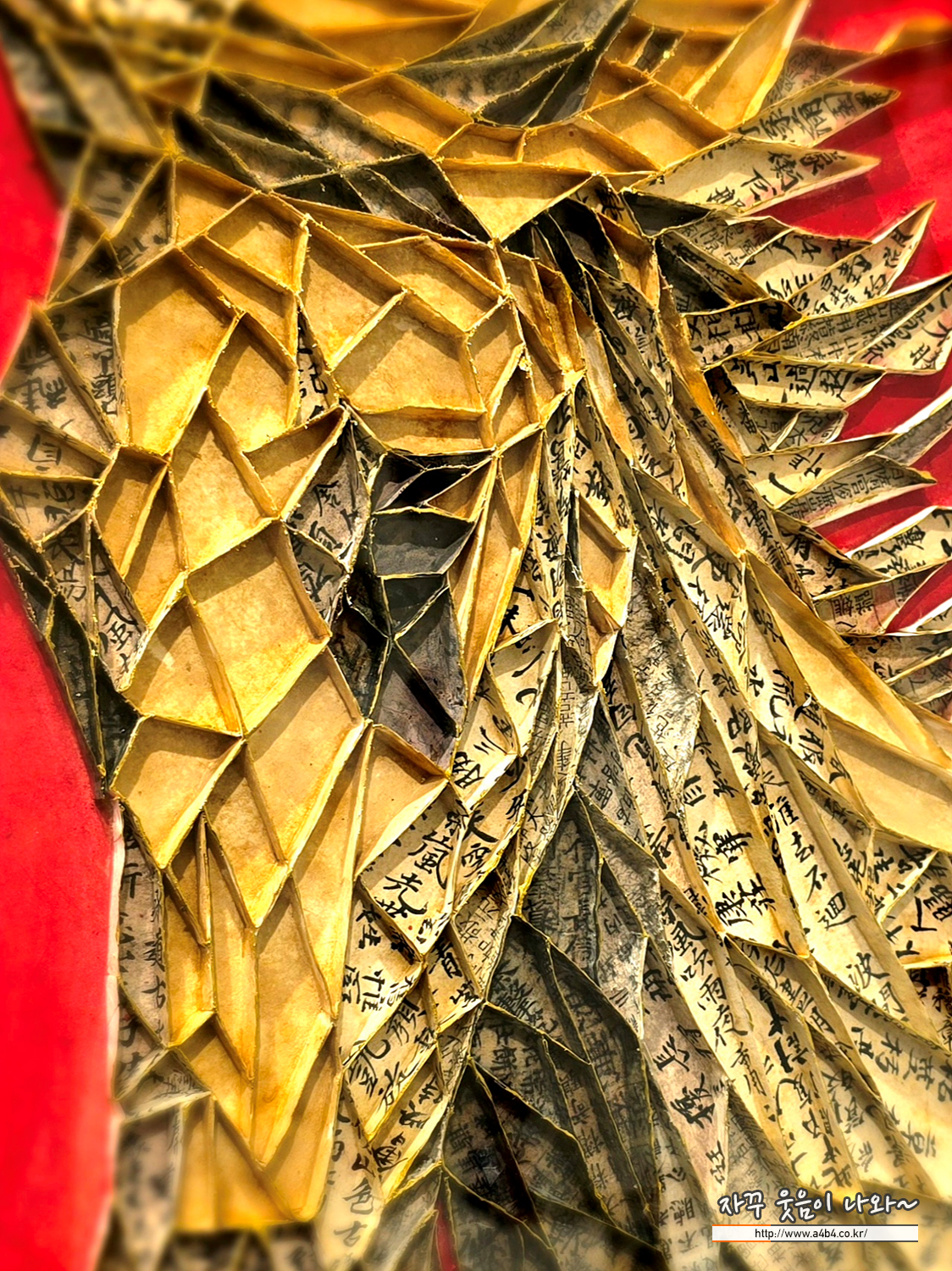 캔버스 위에 아크릴과 한지등을 이용해서 독특한 느낌의 작업을 하고 있는 수레아 작가