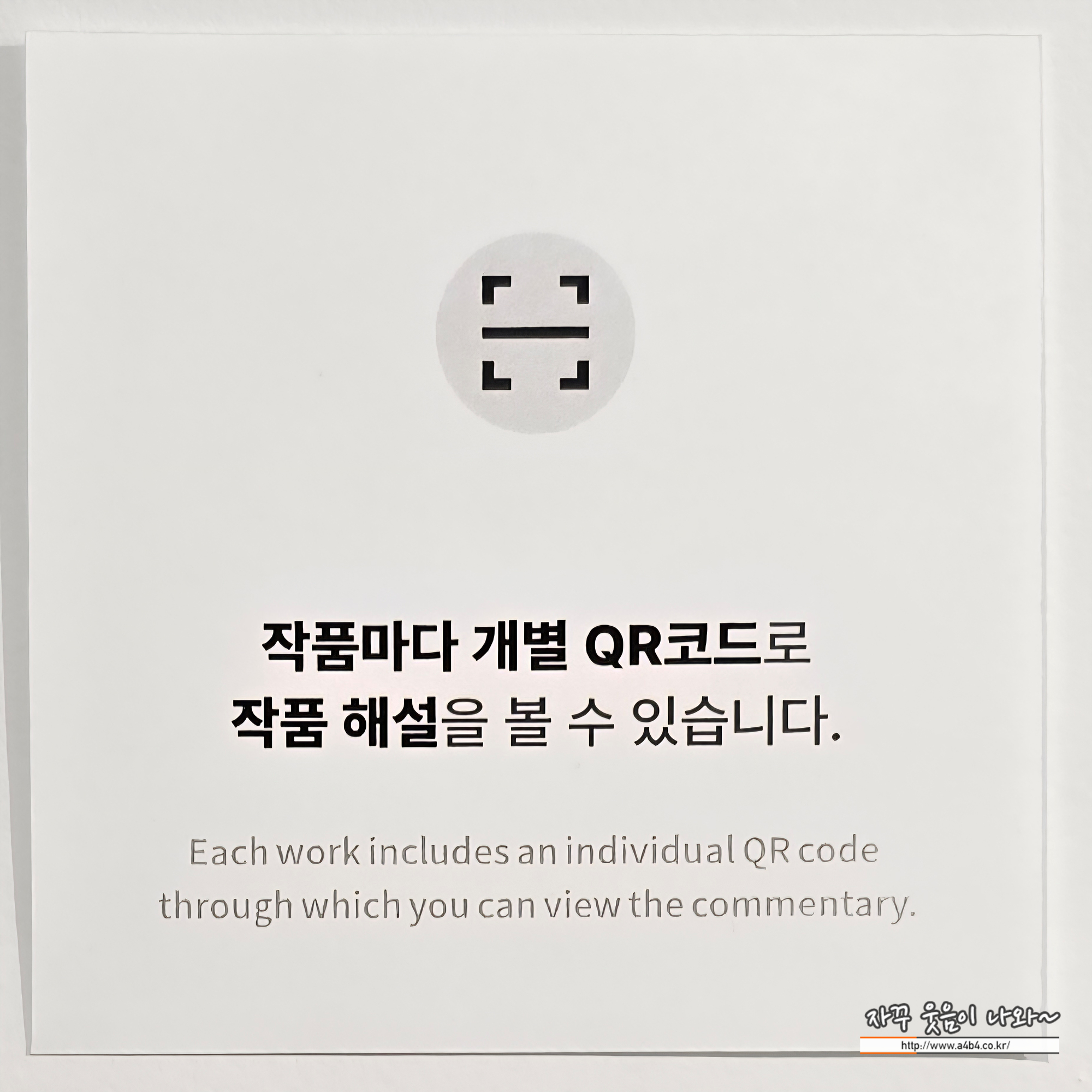 이번 전시회는 작품 명제표에 캡션과 함께 QR코드가 인쇄되어 있습니다.