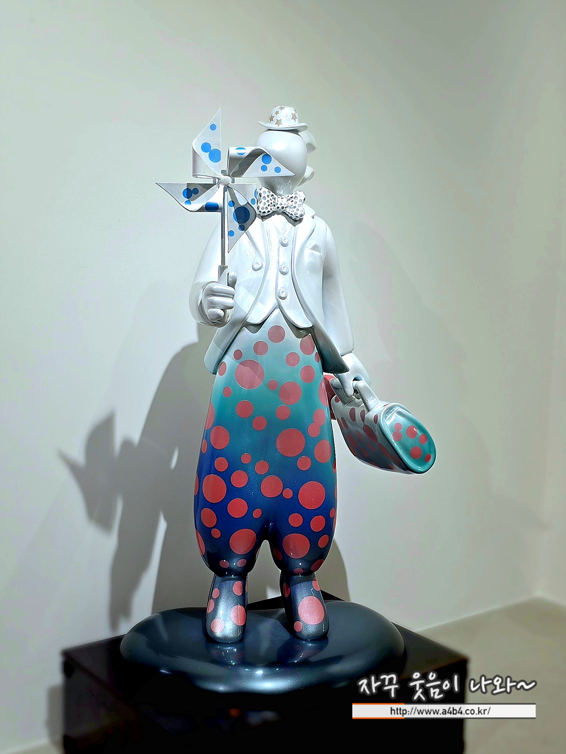 김대성 조각가의 작품 〈꿈꾸는 이의 초상〉은 상상과 현실의 경계를 넘나드는 작가의 내면세계를 형상화한 조각입니다. 머리 위에 앉은 유니콘은 순수함과 상상력의 상징으로, 현실 속에서도 ‘꿈꾸는 아이’로 남고자 하는 작가의 자아를 대변합니다. 작품 속 인물은 두꺼운 안경 너머로 세상을 바라보지만, 그 시선은 외부보다 내면을 향합니다. 과장된 머리와 리본, 화려한 색채의 질감은 김대성 작가의 팝아트적 표현 감각을 드러내며, 현실의 무게보다 유희와 상상의 자유를 강조합니다.