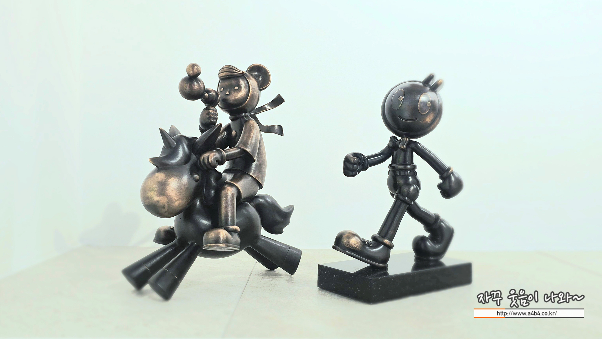 소년이 유니콘을 타고 비누방울을 불며 달리는 장면은 동화적으로 형상화된 작품입니다. 김대성 작가는 환상 속 유니콘과 순수한 소년의 이미지를 결합해, 어린 시절의 꿈과 상상, 순수한 희망의 세계를 따뜻하게 표현합니다. 브론즈 질감의 은은한 색조는 현실과 환상의 경계를 흐리게 하며, 조용하지만 깊은 감동을 주는 동심의 서사를 담고 있습니다.