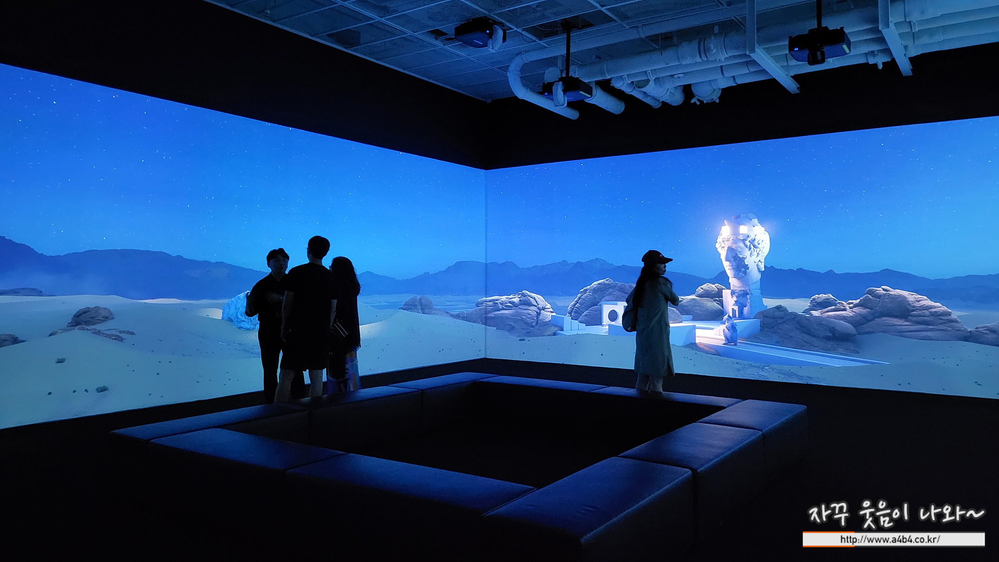 전시장은 한 곳에 고정되어 관람하는 방식은 아닙니다. 이렇게 이동하면서 가끔씩 앉아서... 때로는 누워서 작품 감상하시면 됩니다.