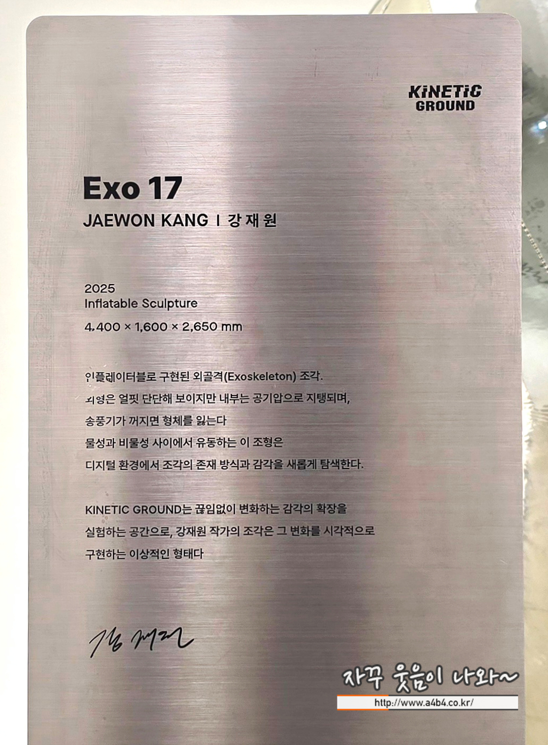 강재원 작가의 작품들은 금속처럼 단단해 보이지만 진짜 재료는 봉제 원단과 공기이며, 시각적으로는 메탈릭한 표면 효과와 대형 구조의 압도감을 주고 있습니다. 아마 가위로 찌르면 바람이 바로 빠질 것 같은...