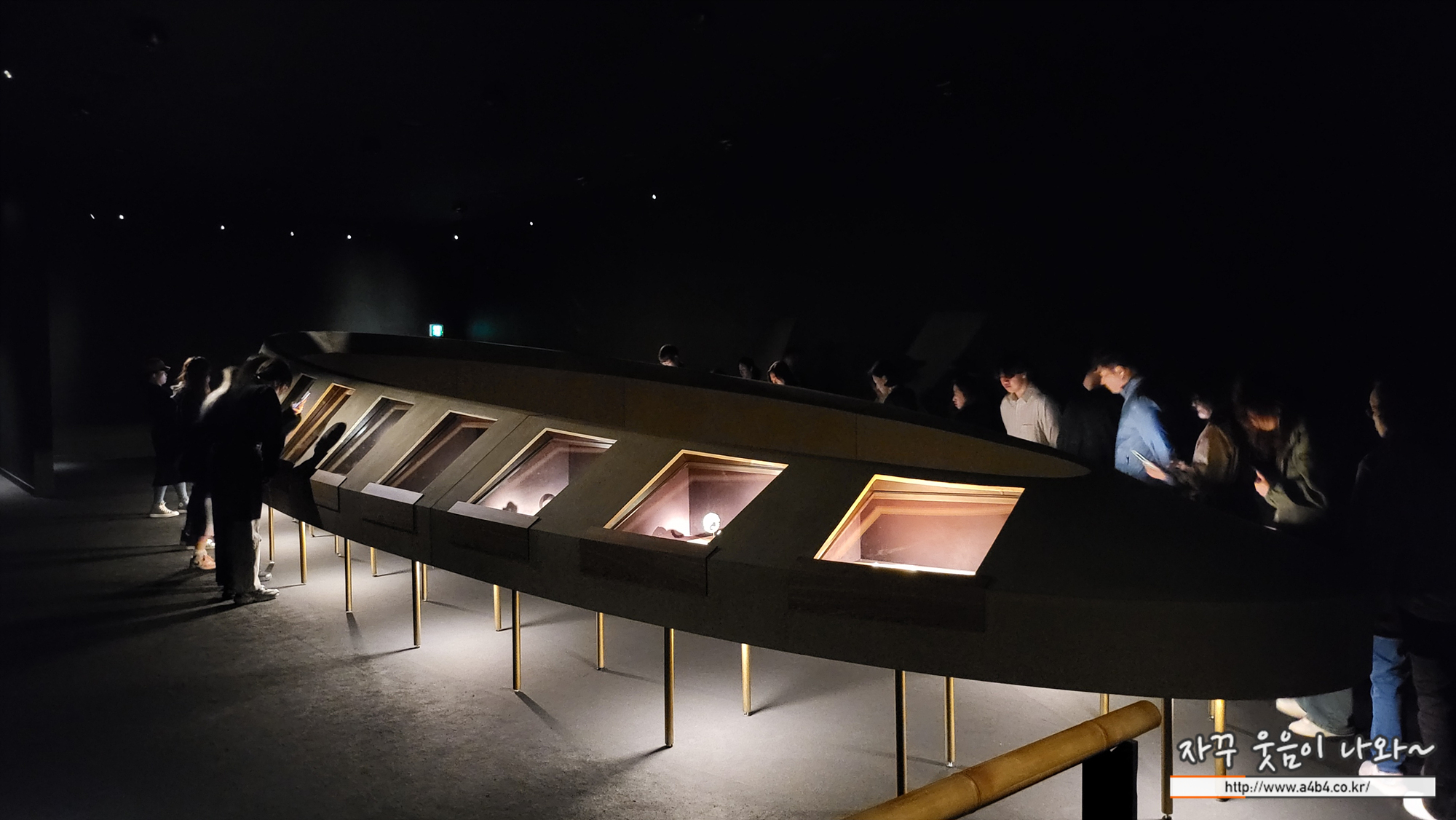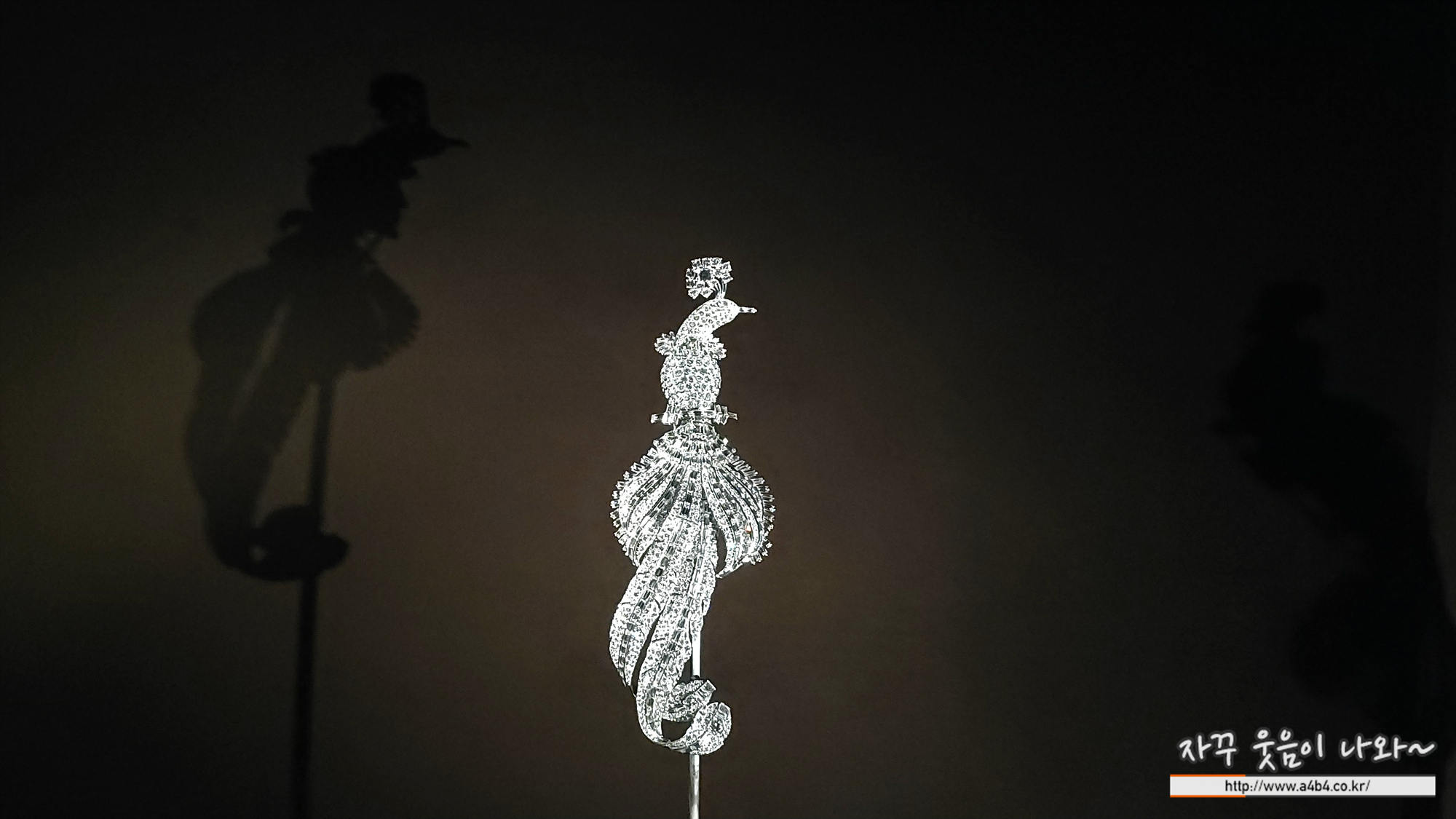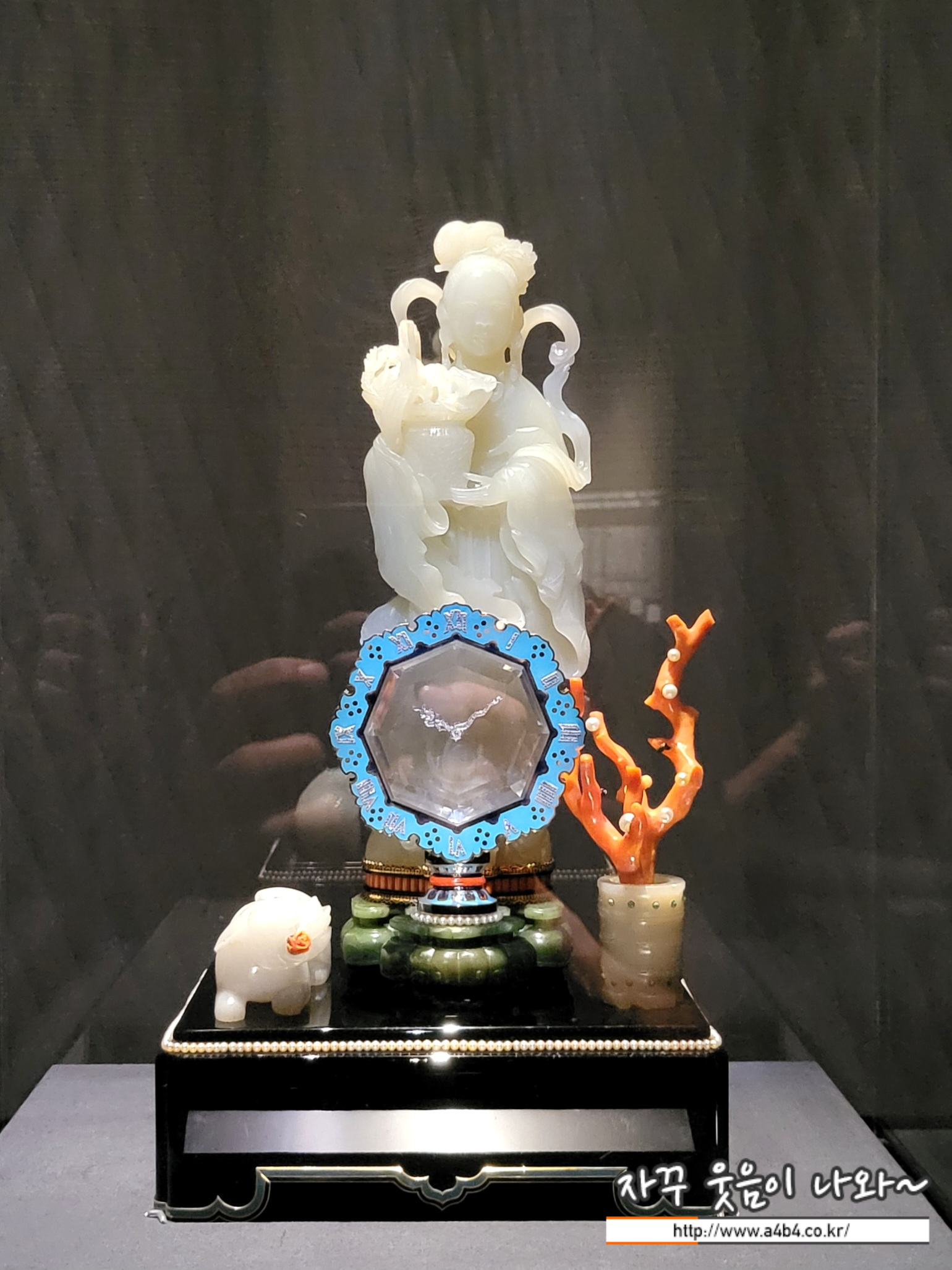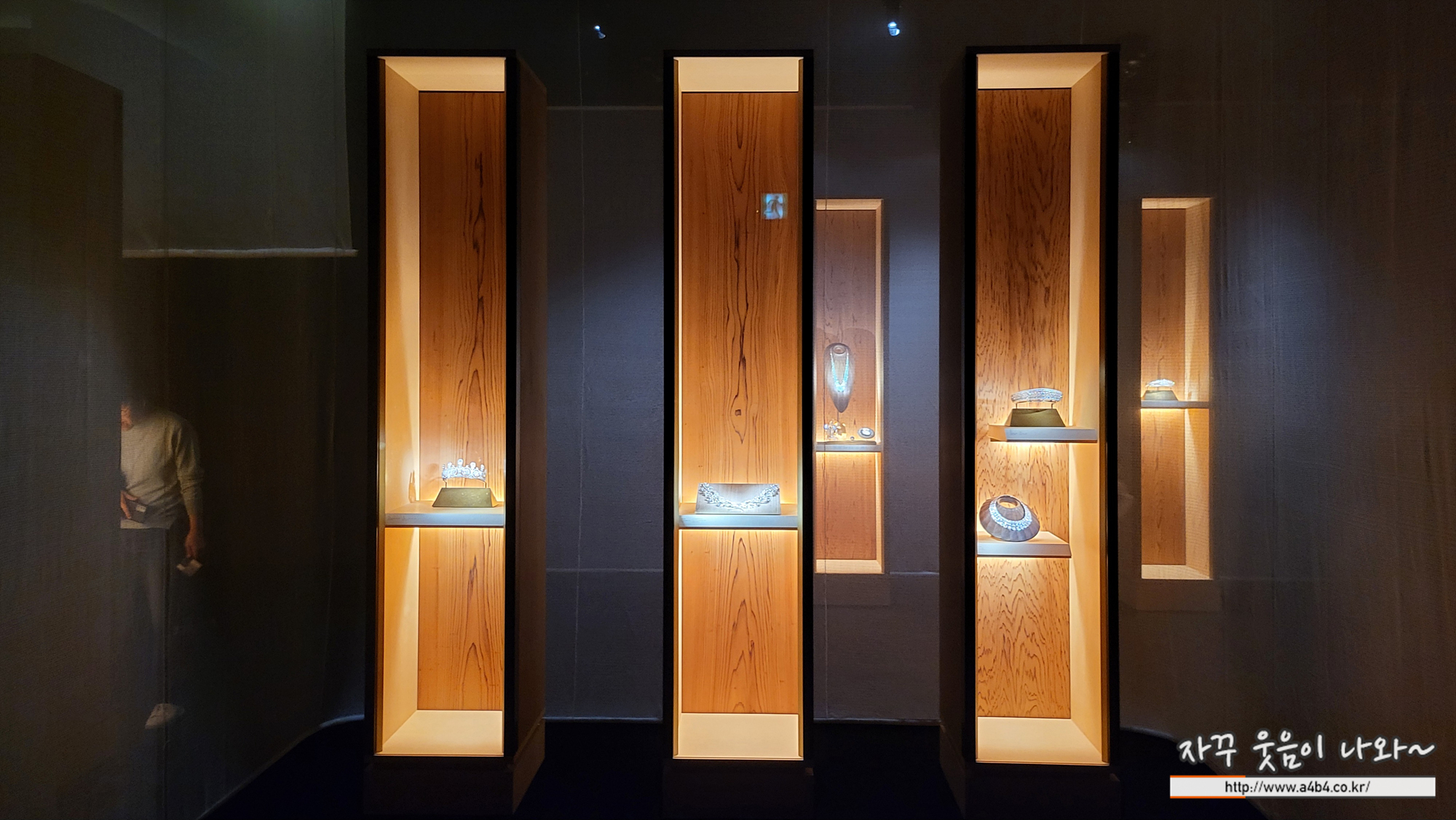 사진과 같이 실내는 상당히 어둡습니다. 사진은 밝기를 조금 올렸다고 생각하셔야 하네요. 물론 작품에 집중할 수 있도록 유리상자속 작품에는 충분한 조명이 들어오고 있습니다만, 반짝이는 보석과 강한 조명 대비로 작품에 촞점이 잘 맞지 않는 것은 물론 노출 맞추기도 쉽지 않습니다. 사진에 꼭 필요한 분들은 DSLR이나 미러리스 카메라 필요합니다.