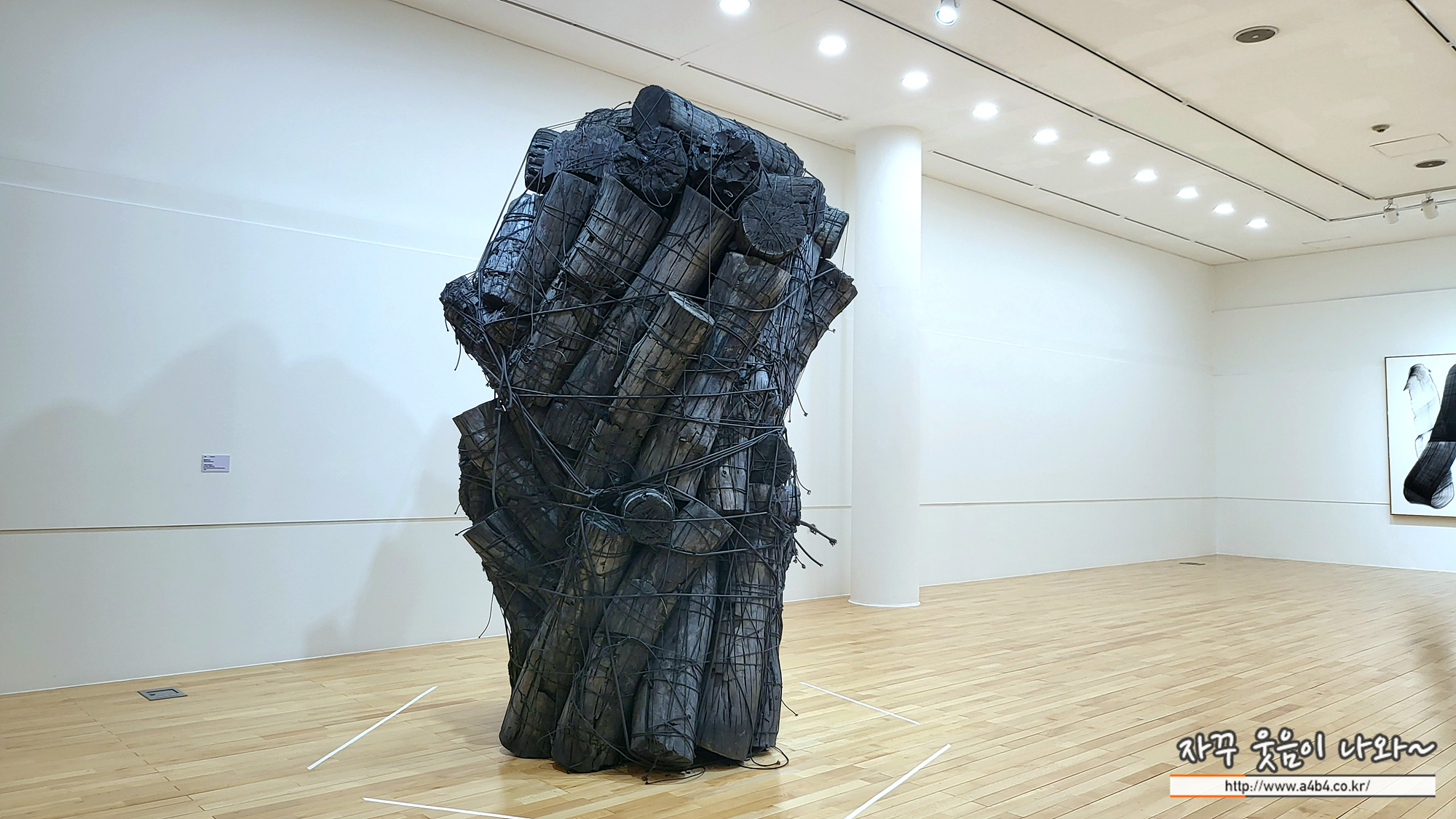 이배 작가의 가장 잘 알려진 작품연작 숯을 이용하여 이러한 입체 조형물 또는 액자형의 평면 작품들이 있는데, 이번에는 거대한 조형물이 전시되어 있습니다. 아쉽게도 이번 소마미술관 개관 20주년 특별전 '드로잉, 삶의 철학을 그리다' 에서 이배 작가의 작품은 많이 만나볼 수 없습니다.