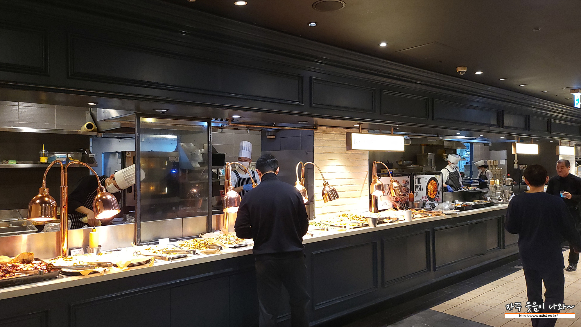 이 시간에 모든 테이블이 다 찬 것은 아니고요. 아마도 레스토랑이 오픈하고 얼마 안되는 시간이다보니 음식코너로 사람들이 몰려들 우려가 있어 입장을 조정하는 것 같다는 생각... 암튼 오래 기다리지 않고 입장 했습니다.