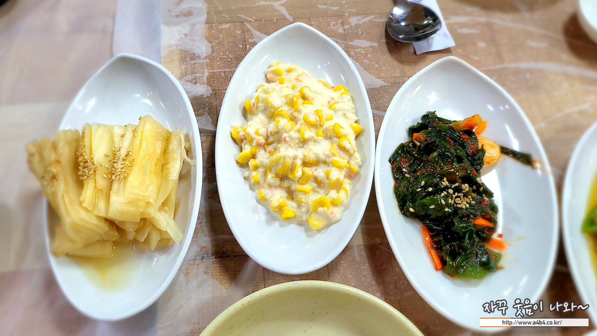 반찬은 앞에서 소개한 고기반상과 비슷합니다. 다만 샐러드가 동치미로 변경되어 나오네요.