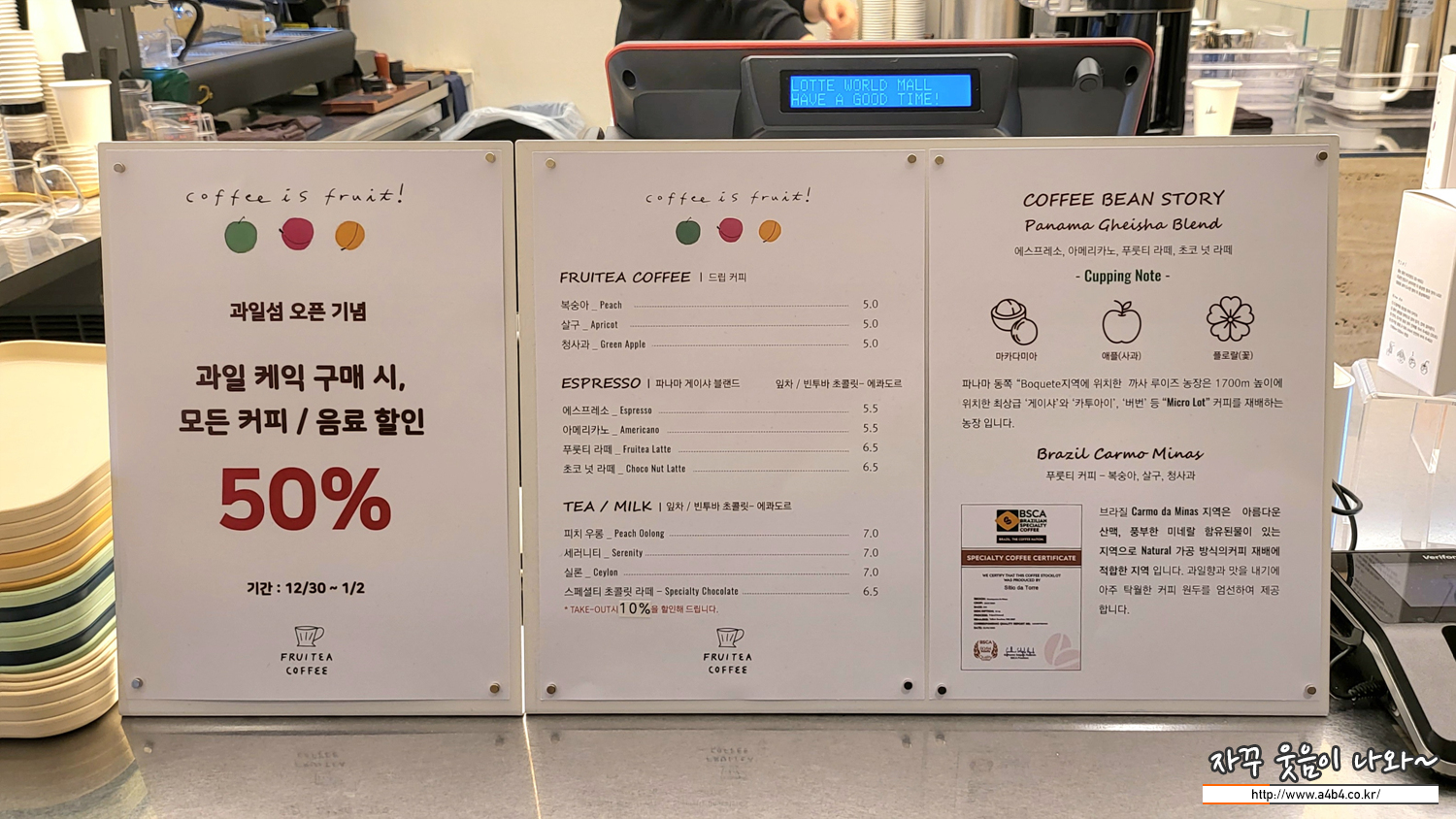 이 외에도 과일 맛의 커피와 음료들이 준비되어 있습니다.
