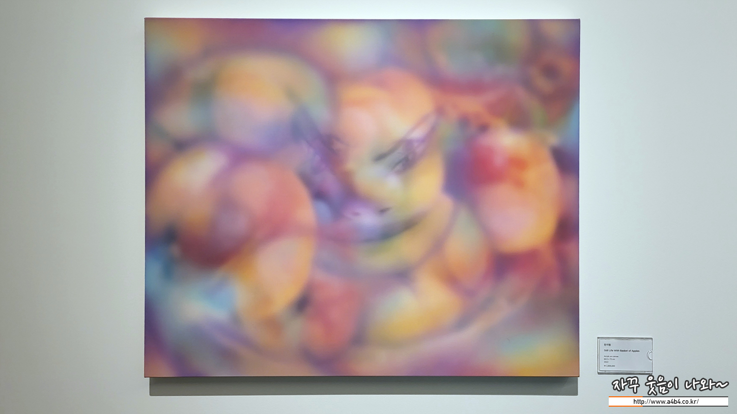 진짜보다 더 진짜같은 유화 작품입니다. 사과 작품 크기는 2미터가 넘는 사이즈로 작품 가격도 1억원을 넘는 가격입니다.