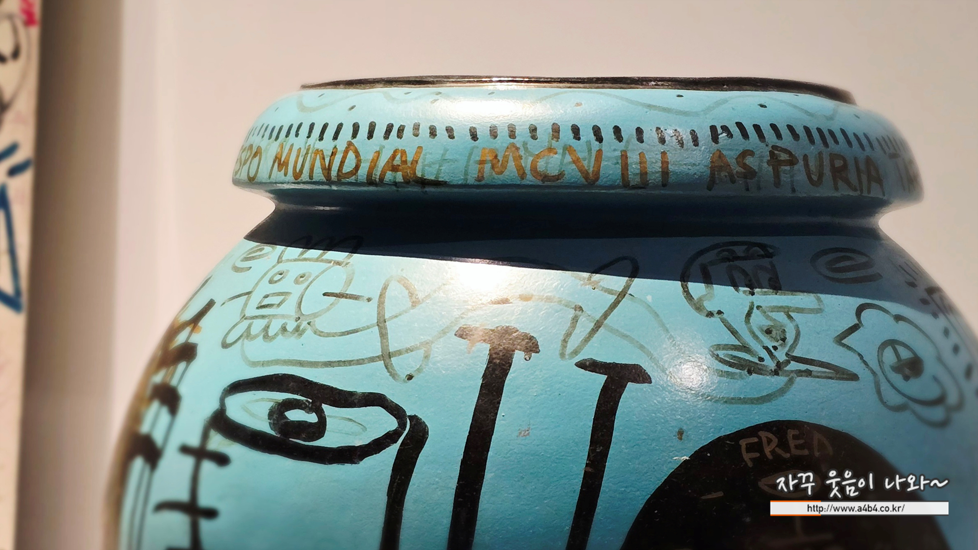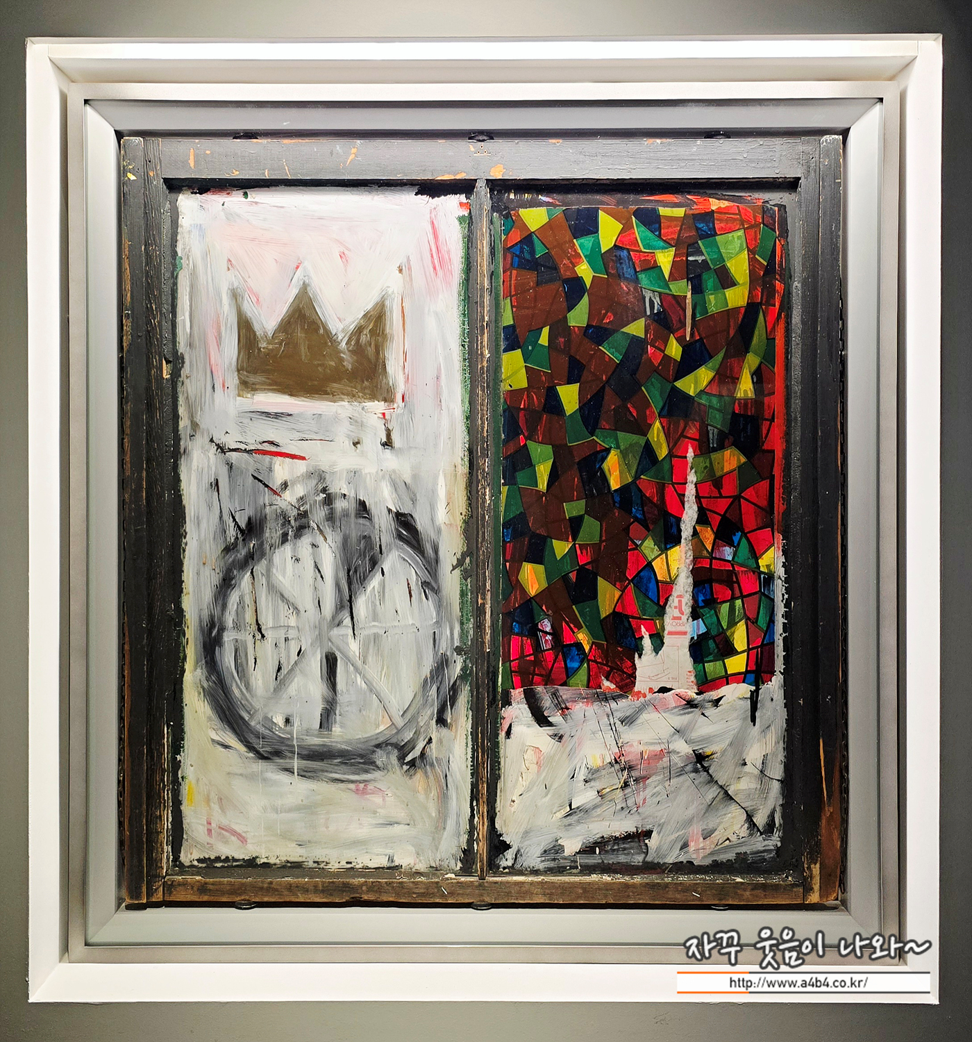 바로 오늘 소개하는 '장 미셸 바스키아 : 과거와 미래를 잇는 상징적 기호들' 전시회 첫 작품의 뒷면, 바로 유리창문에 작업한...