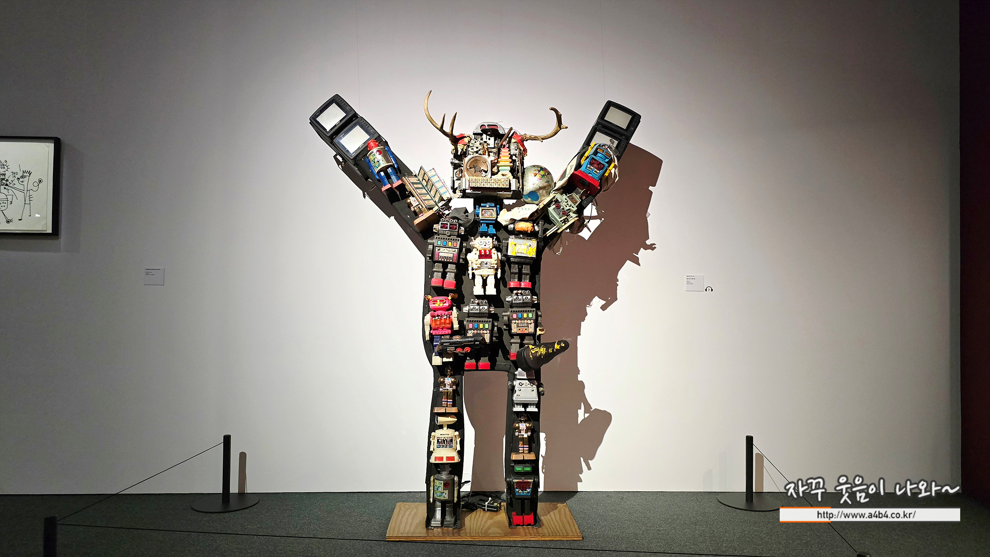 머리의 사슴뿔 오브제와 양팔을 치켜든 자세는 토템이나 샤먼을 연상시키며, 백남준의 독창적 상상력이 드러난다. 그는 전자 폐기물에서 새로운 조각 언어를 만들어내고, 기술을 예술적 상상력의 매개체로 확장했다. 이 로봇은 과거의 오브제를 넘어, 포스트휴먼 시대의 샤먼이자 문화적 주체로 기능한다.