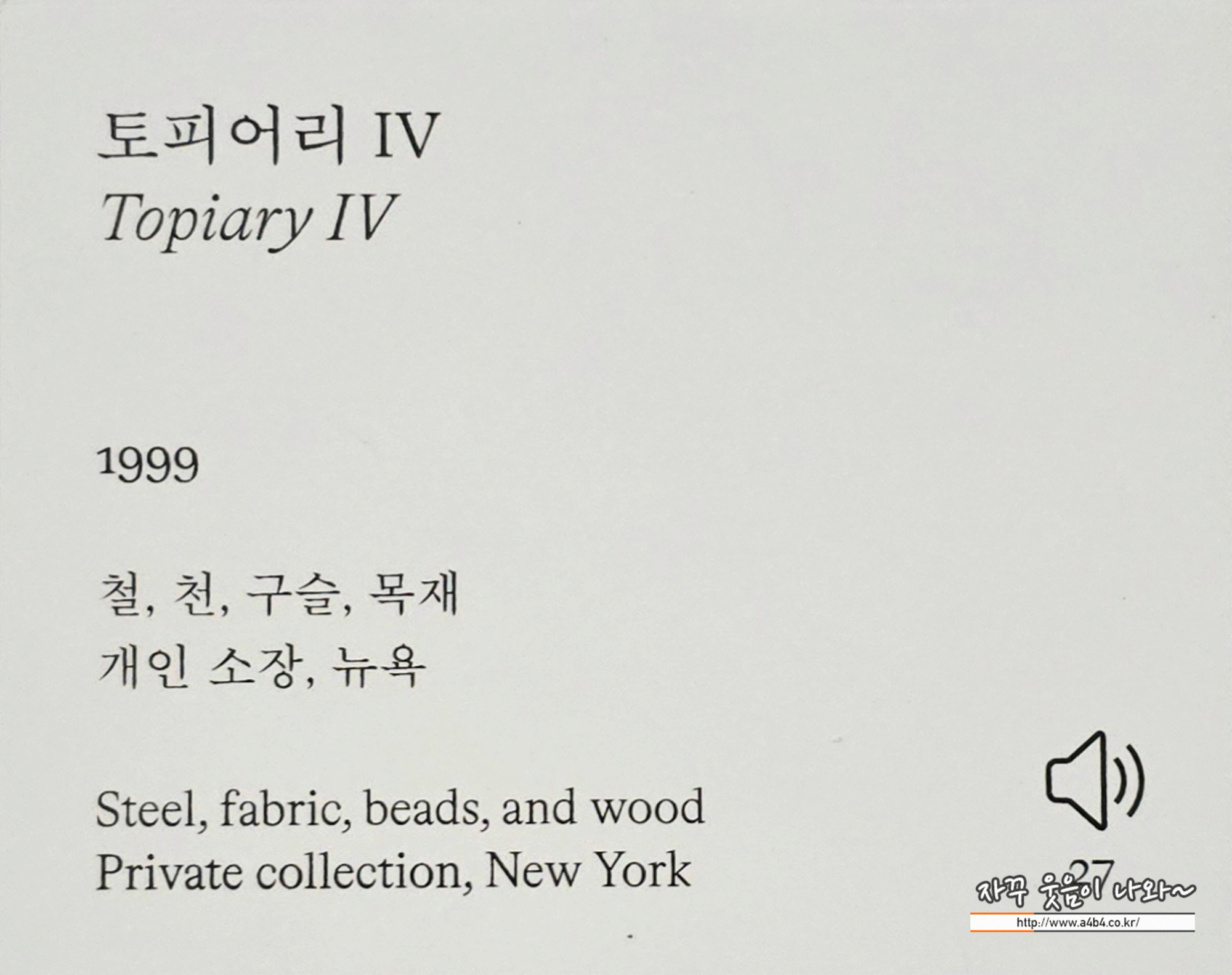 오늘은 호암미술관에서 열리고 있는 루이즈 부르주아: 덧없고 영원한. 전시회장 2층에 전시된 작품소개였습니다.