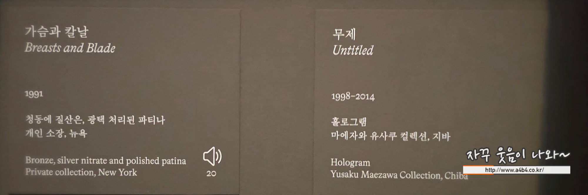 이곳은 1층에 전시된 루이스 부르주아 작품보다는 다소 강도가 강한 (관람객에 따라 다소 불편한) 작품들도 전시되어 있으니 참고하세요.