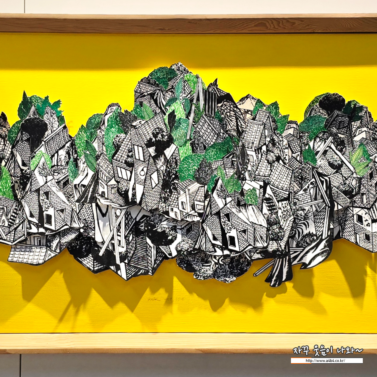 김동기 작가의 꼴라주 작품들은 상당히 큰 규모의 작품들도 있는데요. 이번 전시장에서는 대작보다는 종소규모의 작품 중심으로 전시되어 있습니다.