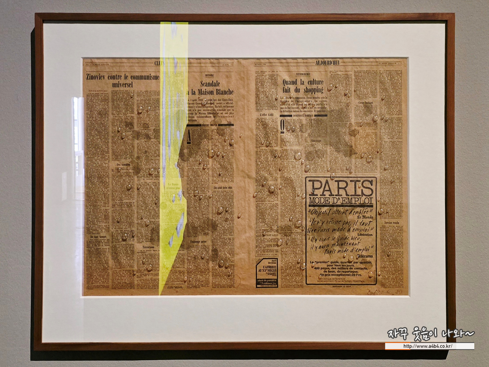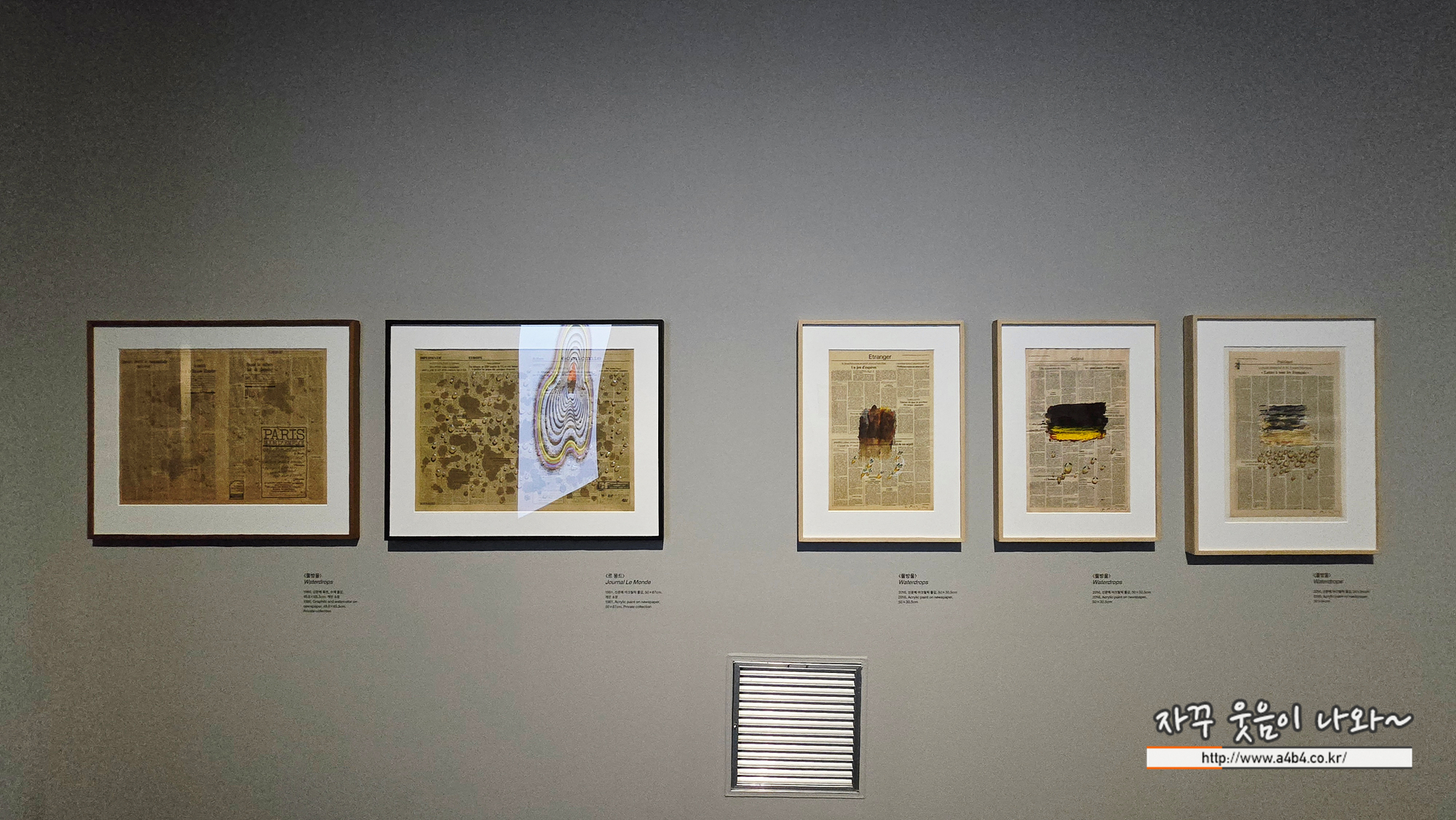 앞에서 김창열 회귀연작 전에 신문에 물방울 작업을 시도했다고 언급했는데요. 이번 전시회 4부 마지막 공간에 신문지에 작업한 작가의 작품들을 만나볼 수 있습니다.