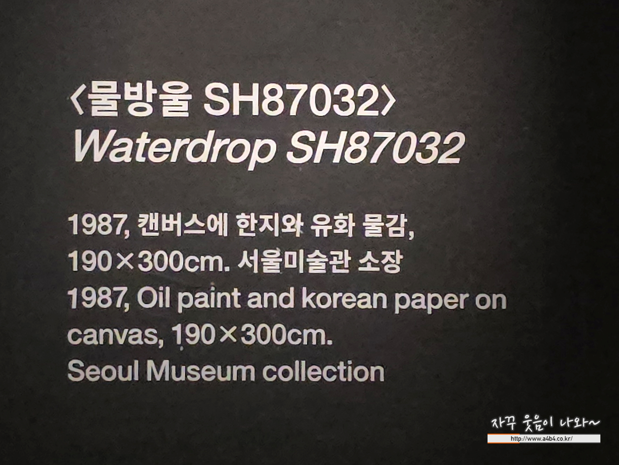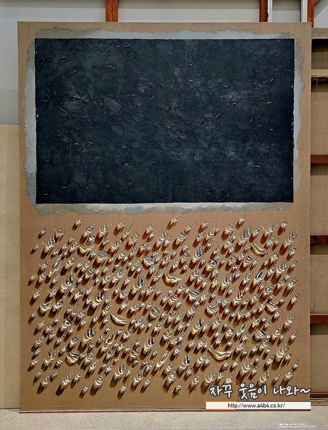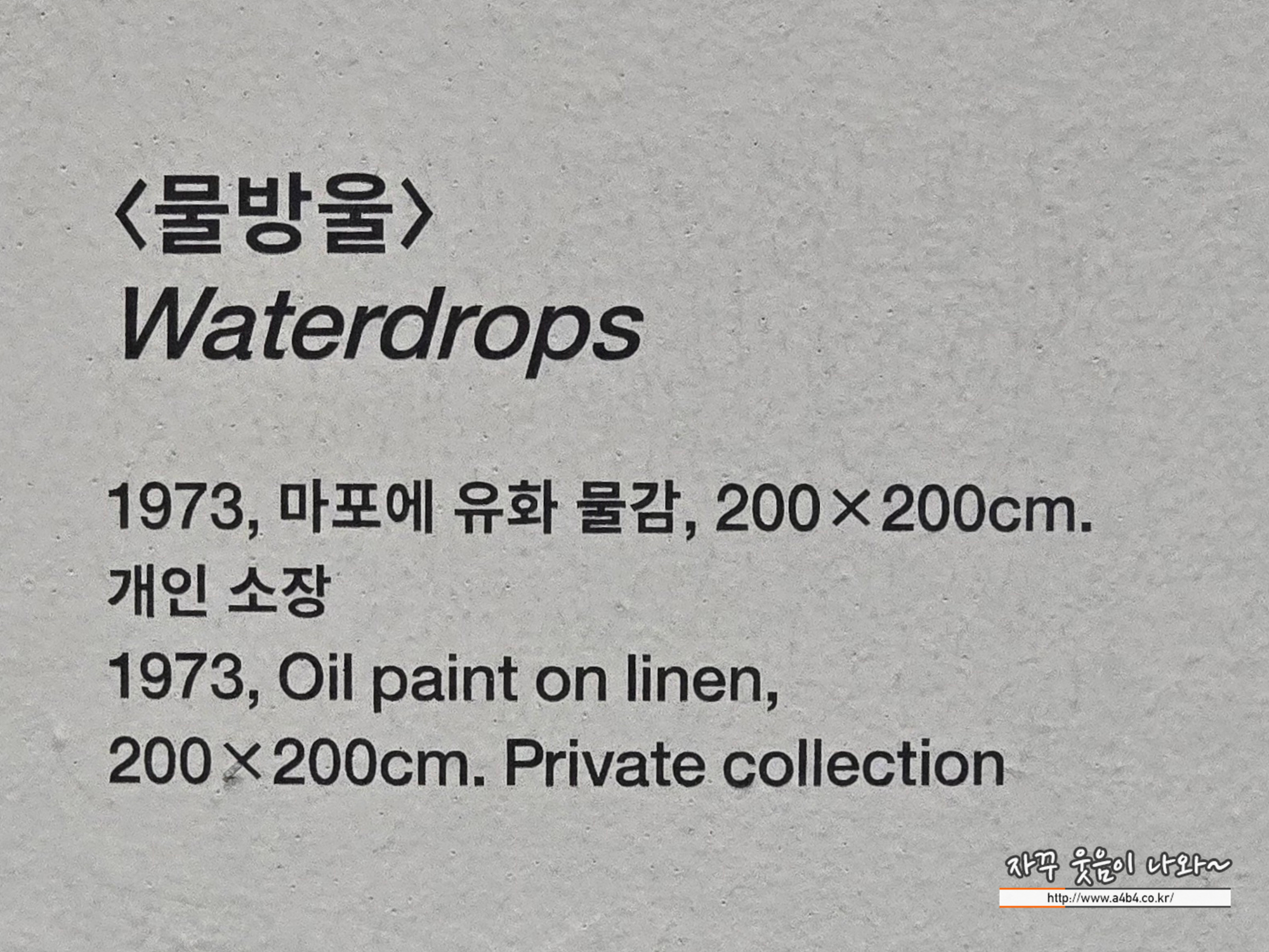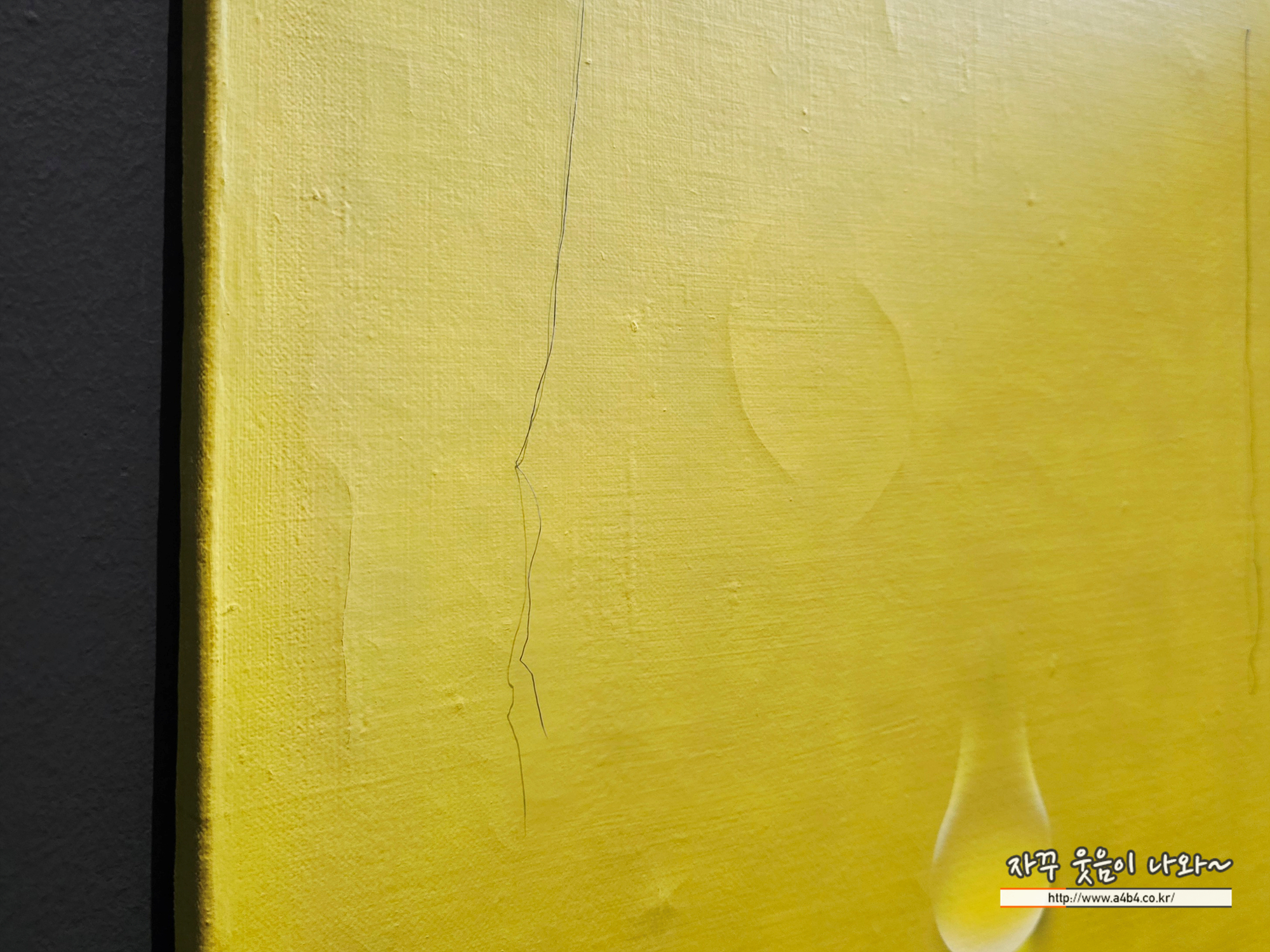 세로가 긴 비례의 화폭에 단 하나의 커다란 물방울이 흘러내리는 상당히 인상깊은 작품입니다.