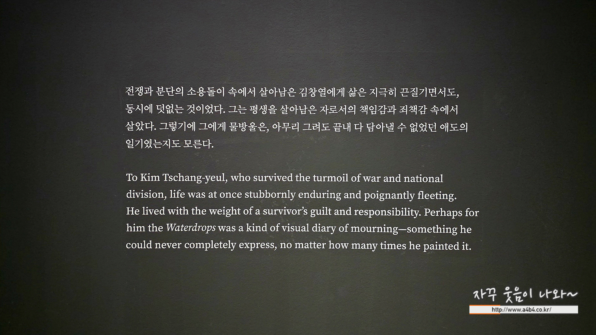 오늘은 김창열 전시회 3장 물방울과 4장 회귀 전시관 소개합니다.